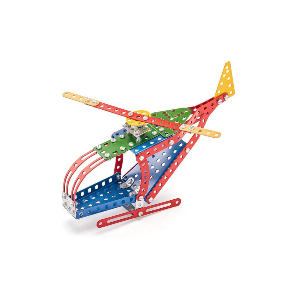 Hagyományos cseh fémszerkezetes Merkur építőkészlet, amelyből az útmutató vagy a fantáziád szerint építhetsz. A készlet 222 darabot tartalmaz egy helikopter megépítéséhez. Alkalmas 5 éves kortól.