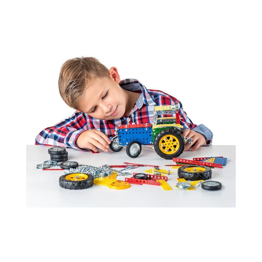 Az éves háromrétegű Merkur - M2020 készlet 753 darabot tartalmaz, amelyekből a mellékelt átfogó útmutató szerint akár 100 különböző modell is megépíthető. Alkalmas 5 éves korú gyermekek számára.