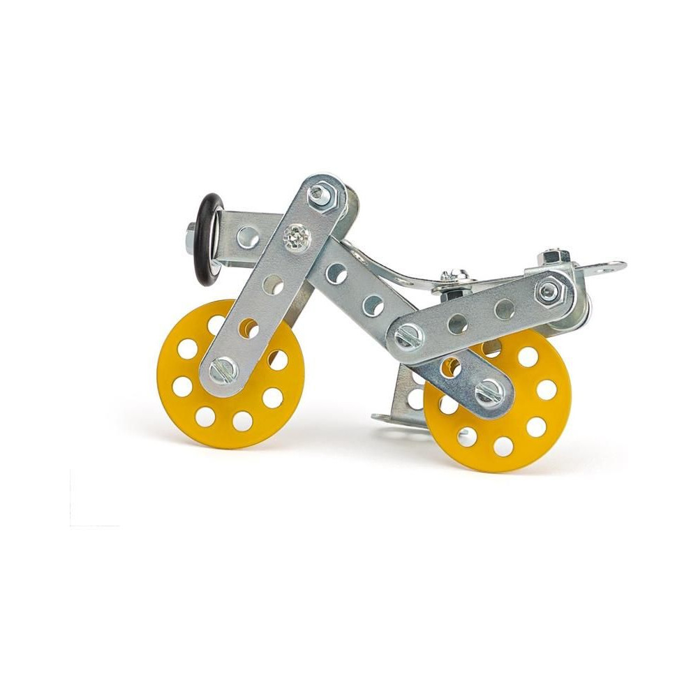 Starter mini készlet Merkur, amelyből 1 modell motorkerékpár építése lehetséges. Ideális a finommotoros készségek és a képzelőerő edzésére. Alkalmas a Merkúrral kezdő gyerekeknek, de gyűjtőknek is. Az összerakott modellekkel lehet játszani, nagyon tartósak. A készlet 52 darabot tartalmaz.