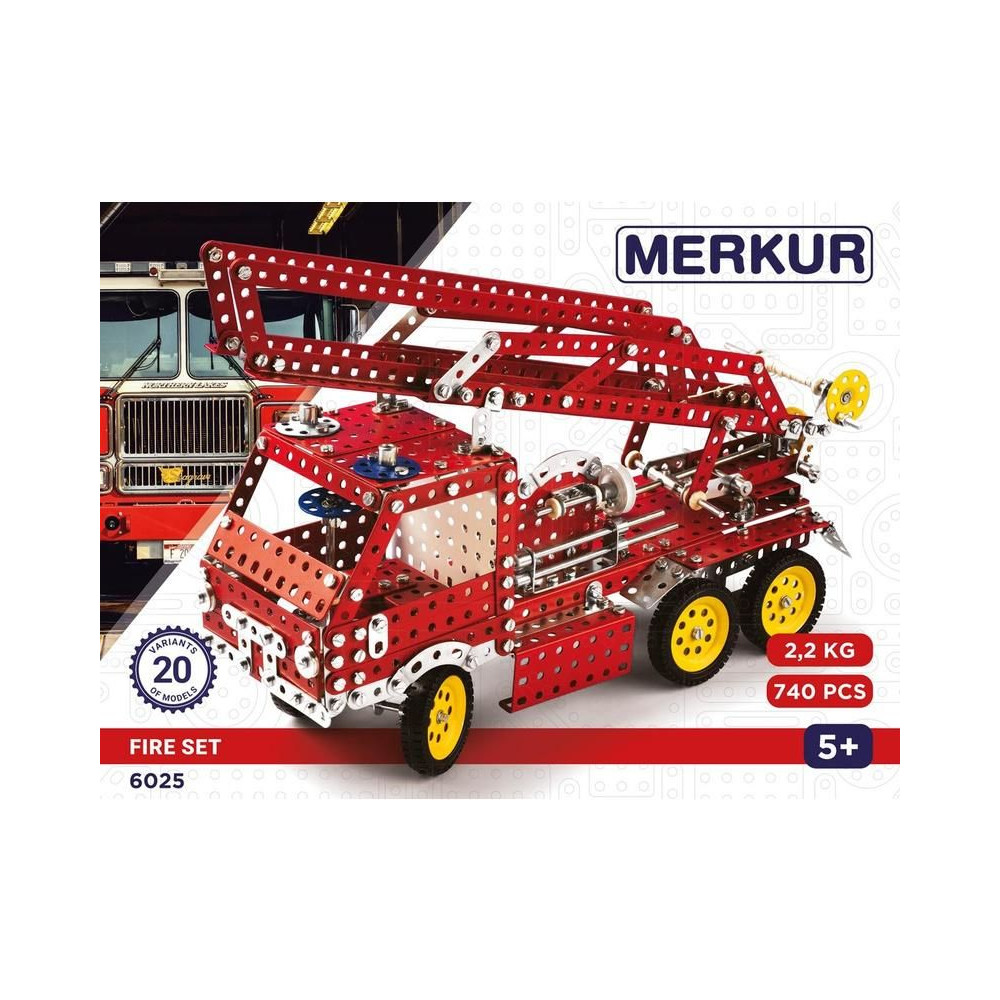 A Merkur FIRE készlet, amely a tűzoltási technológiára összpontosít, lehetővé teszi, hogy minden fiú elmerüljön a tűzoltók világában. A készletből akár 20 modell is összeállítható - például egy tűzoltóautó kihúzható létrával, egy mentő tűzoltóhajó stb. Az alkatrészek száma 740.