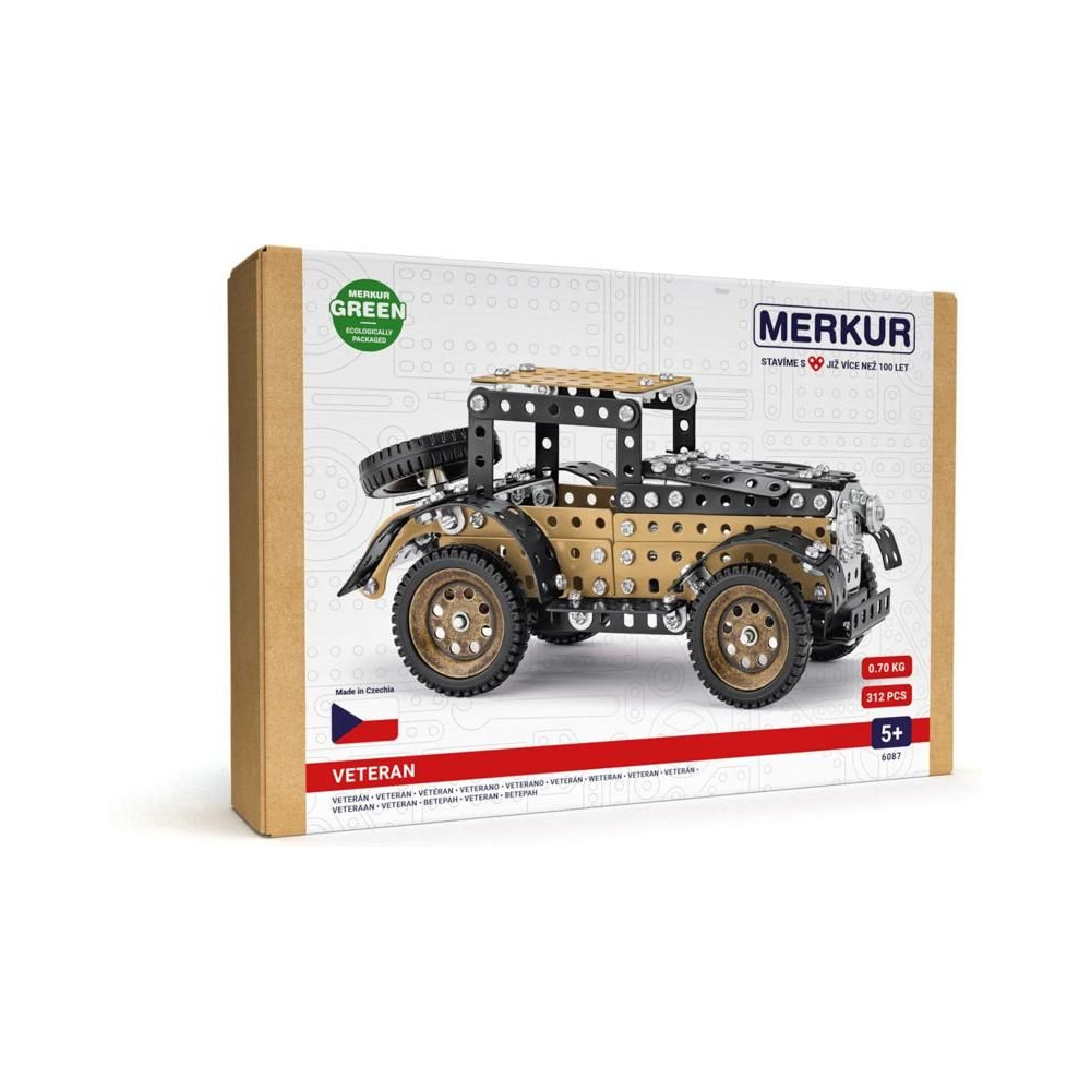 Klasszikus cseh készlet Merkur - Veterán. A csomagban részletes útmutatót, Merkur szerszámkészletet és egyedi Merkur alkatrészeket talál. A Merkur alkatrészek univerzálisak, így nem korlátozzák Önt semmilyen módosításban és ötletben. Így a készletet az utasítások vagy saját ötletei szerint építheti meg.