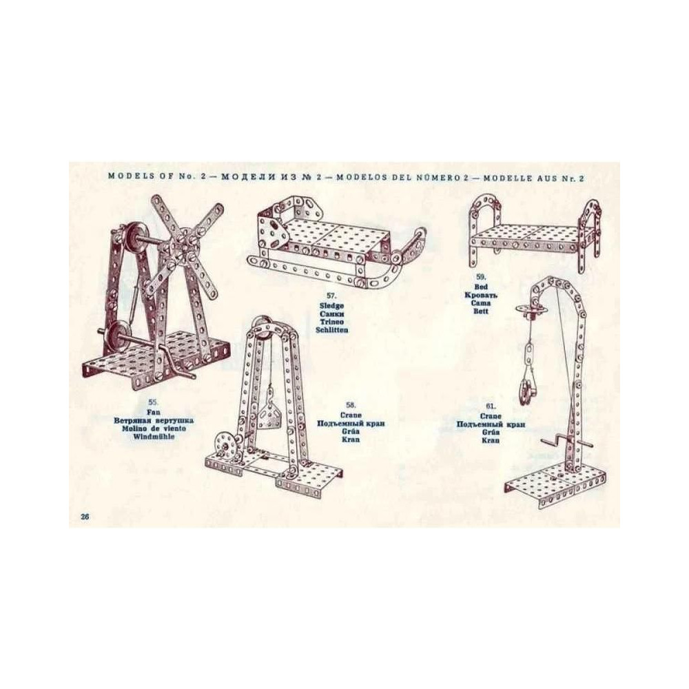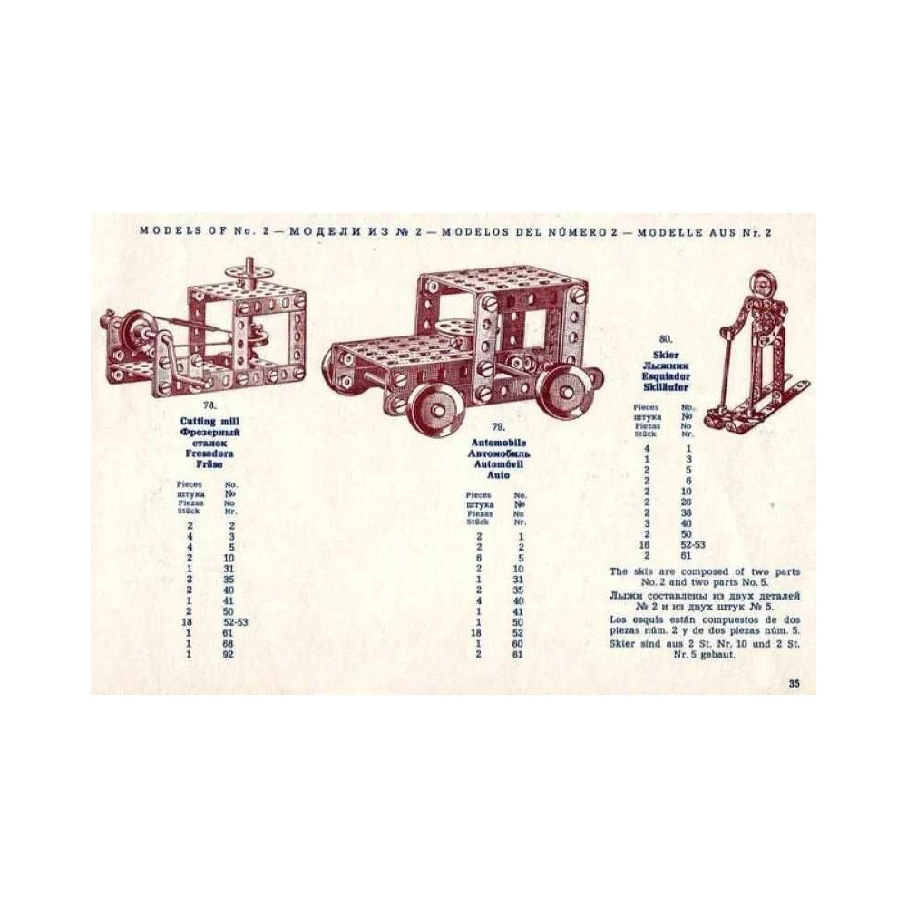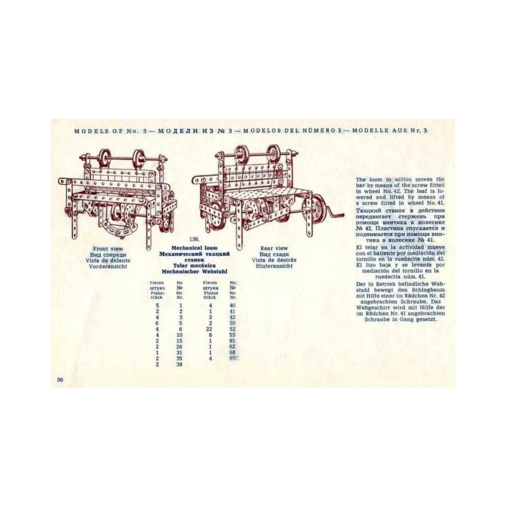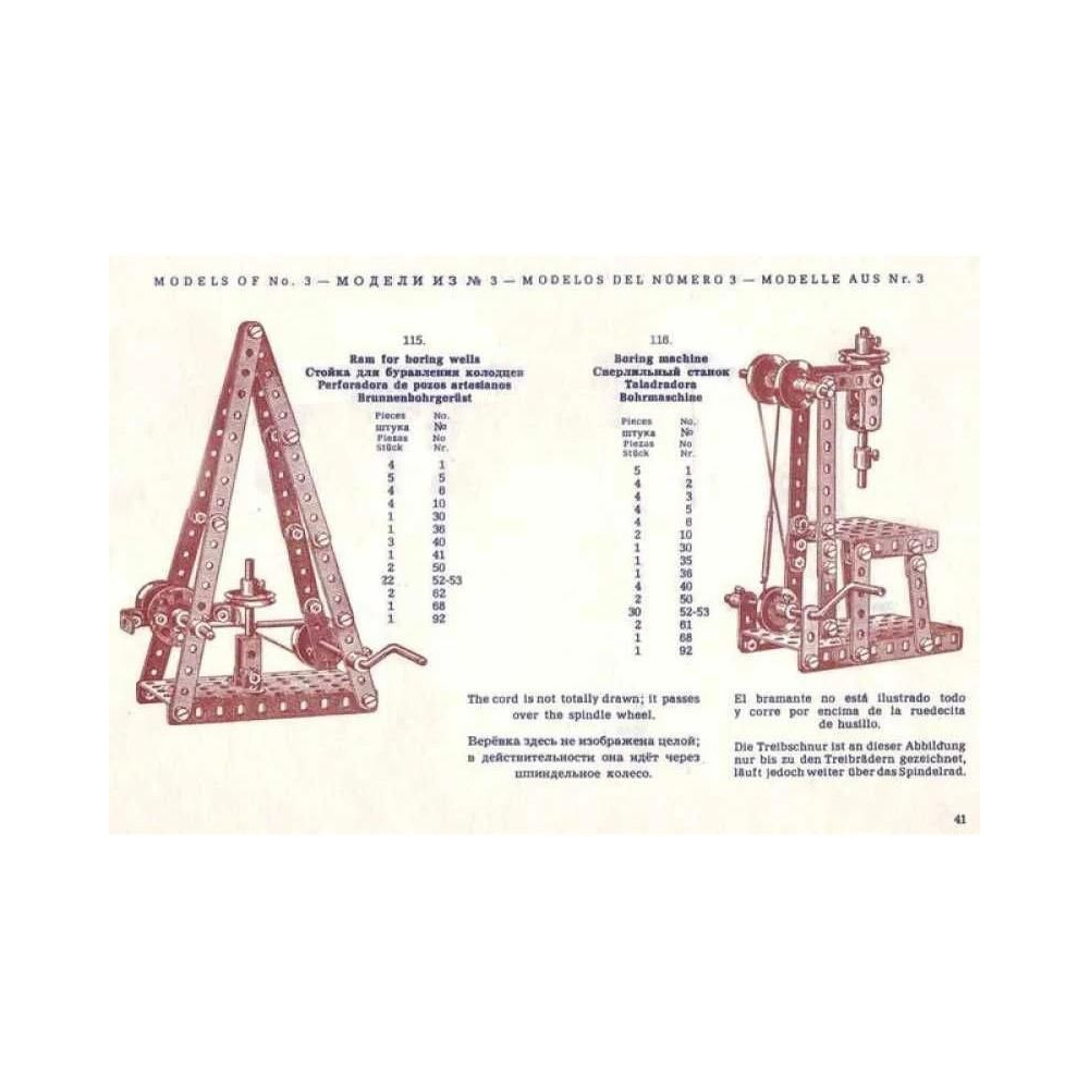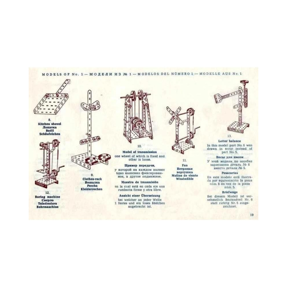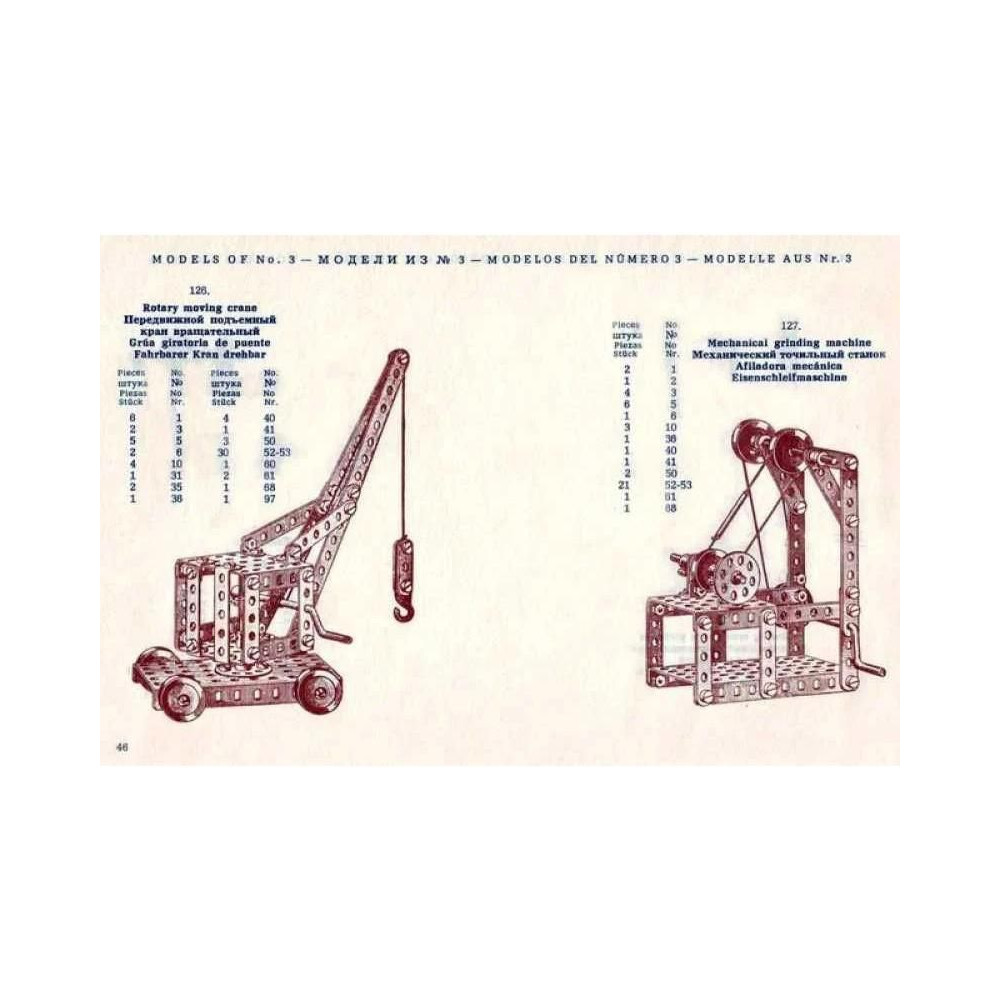 A MERKUR CLASSIC C04 készlethez egy 94 oldalas, az 1930-as évek stílusában készült használati utasítás tartozik. A nagyméretű használati utasítás a MERKUR Classic C03, C04, C05 készletekhez készült - 183 modell. Az utasítások képekkel és eredeti szöveggel vannak ellátva angol, német, spanyol és orosz nyelven. A készlet 213 darabot tartalmaz. Életkor: 6+. Nem alkalmas 3 év alatti gyermekek számára.