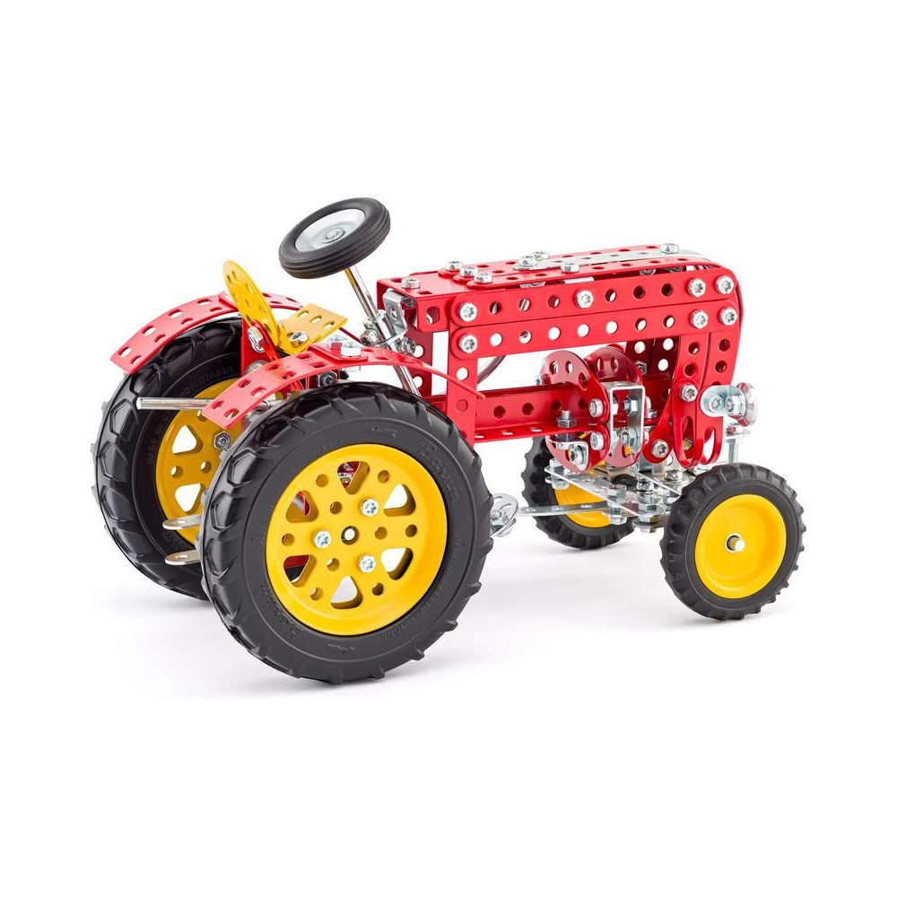Klasszikus cseh Merkur - Retrotraktor készlet. A mozgatható kormánykerék az első tengellyel van összekötve, így lehetővé teszi a modell fordulását. A csomagban részletes használati utasítást és egyedi Merkur alkatrészeket találsz. A Merkur alkatrészek univerzálisak, így semmilyen módosításban és ötletben nem korlátozzák Önt. A készletet az utasítások szerint, vagy a saját elképzeléseid szerint állíthatod össze.
