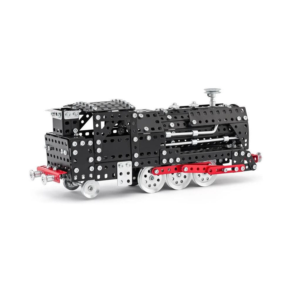 Klasszikus cseh Merkur mozdony készlet. Fém modell az ikonikus fekete színben, piros elemekkel. Mozgatható kerekek és csatlakozók. A Merkur alkatrészek univerzálisak, így semmilyen módosításban és ötletben nem korlátozzák Önt. A készletet az utasítások szerint, vagy a saját elképzeléseid szerint állíthatod össze.