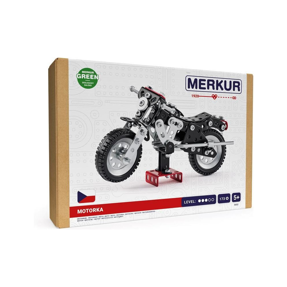 A Merkur fémkészlettel te is motorossá válhatsz egy időre, és építhetsz egy motorkerékpár-modellt. Mozgó kerekek, elegáns piros dizájn. A mozgatható kormánynak köszönhetően balra és jobbra is lehet fordulni. Praktikus állvány, amelyre a motorkerékpár letehető. Az összeszerelt modellel játszhatsz, nagyon strapabíró.