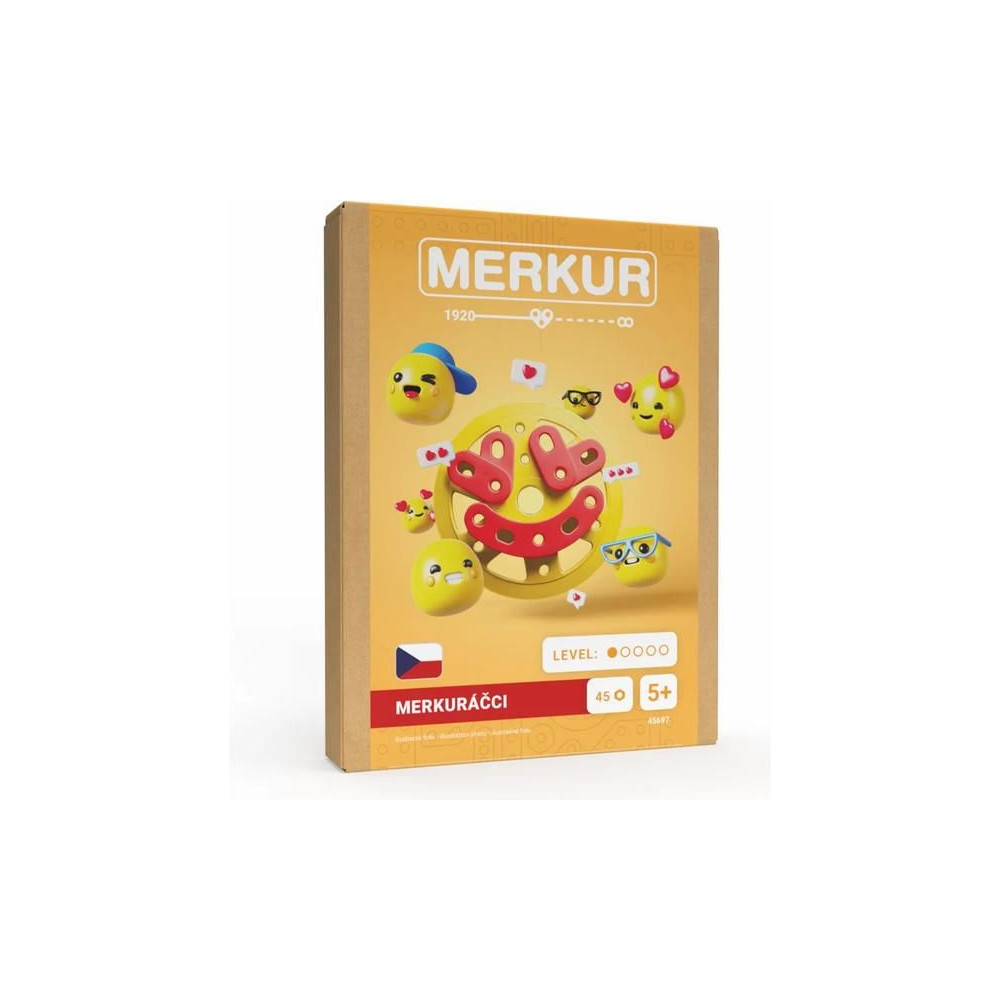 Klasszikus cseh Merkur Mini Merkuráčci készlet. Merülj el a kreativitás világában mini emotikonok építésével. Ez az egyedi mini készlet az első Merkur építőkészlet 1-es nehézségi fokozatban. Az építőkészlet ideális eszköz a gyermekek technikai készségeinek és képzelőerejének fejlesztéséhez. A Merkur alkatrészek univerzálisak, így nem korlátoznak semmilyen módosításban és ötletben. A készletet az utasítások szerint vagy a saját elképzeléseid szerint állíthatod össze.