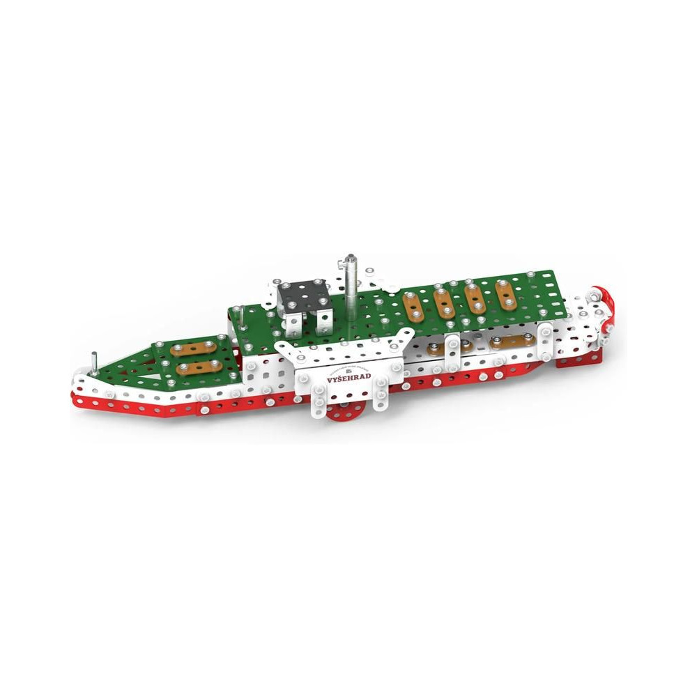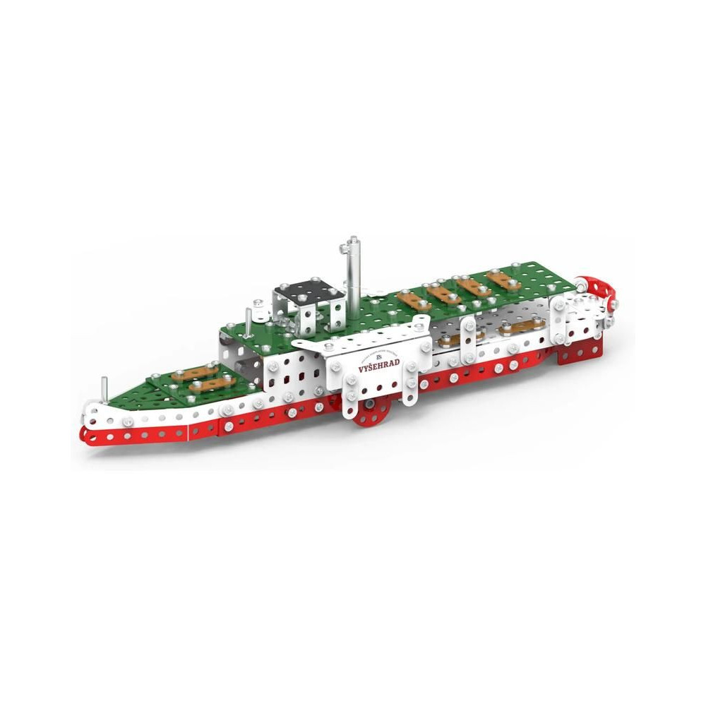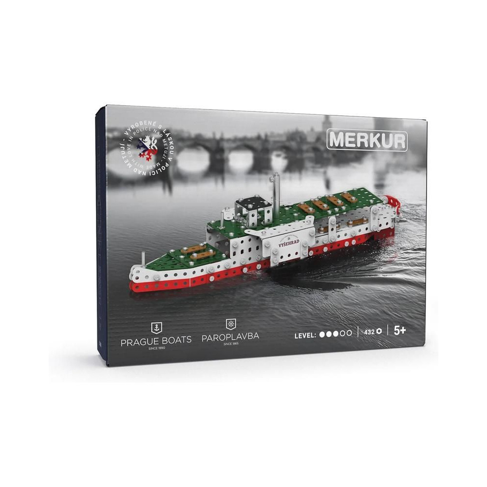 Klasszikus cseh Merkur - Vyšehrad gőzhajó készlet. A csomagban részletes útmutatót, Merkur szerszámkészletet és egyedi Merkur alkatrészeket talál. A Merkur alkatrészek univerzálisak, így nem korlátozzák a módosítások és ötletek lehetőségét. A készletet az utasítások vagy a saját elképzelései szerint állíthatja össze.