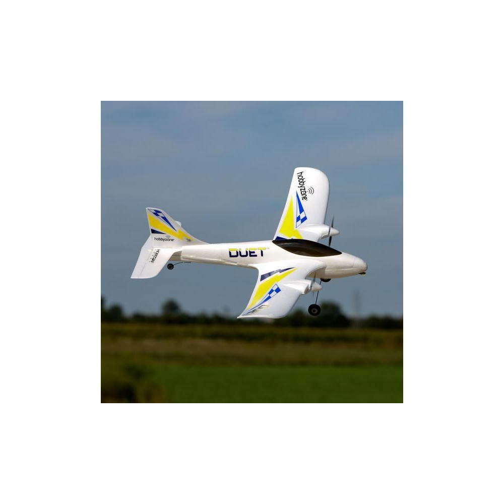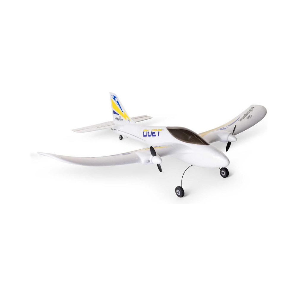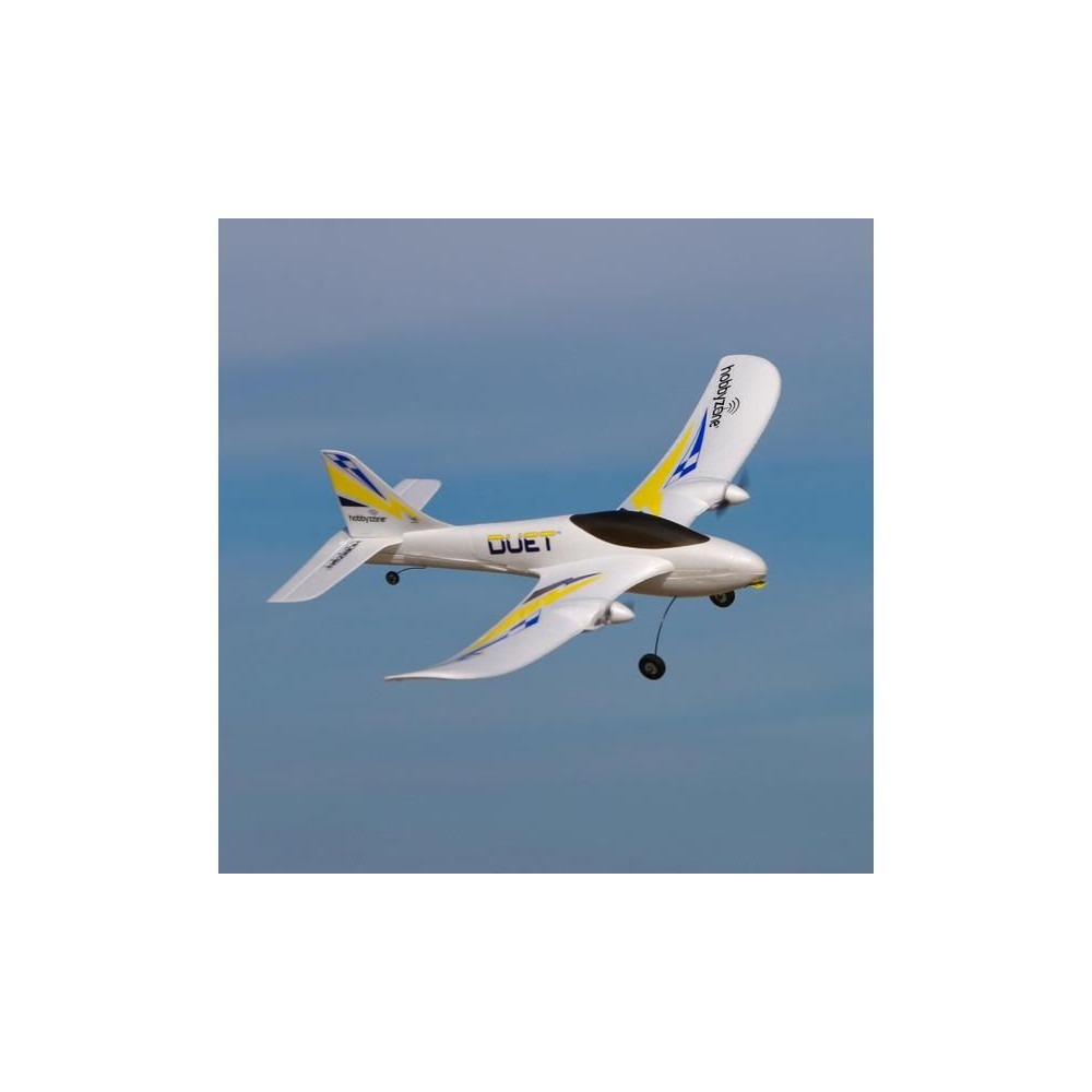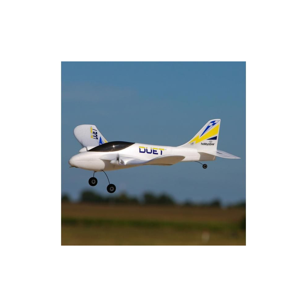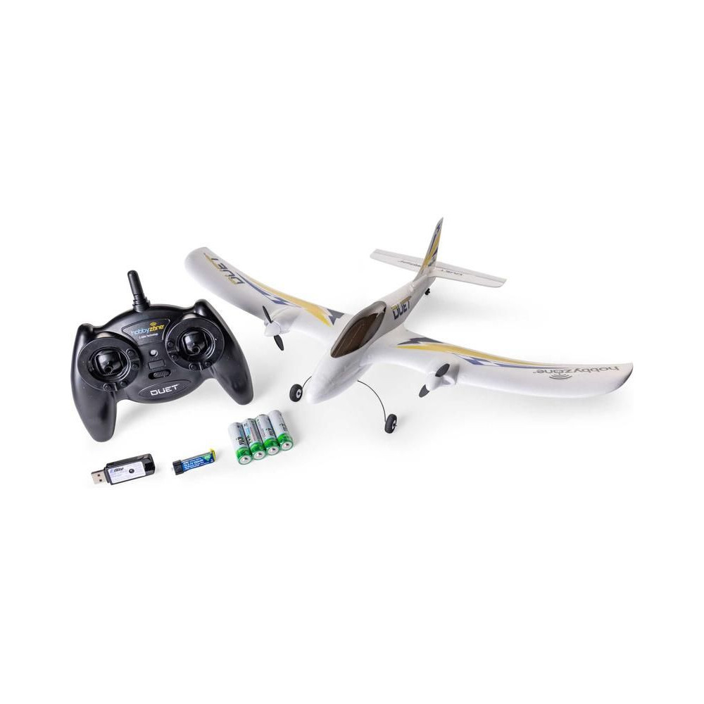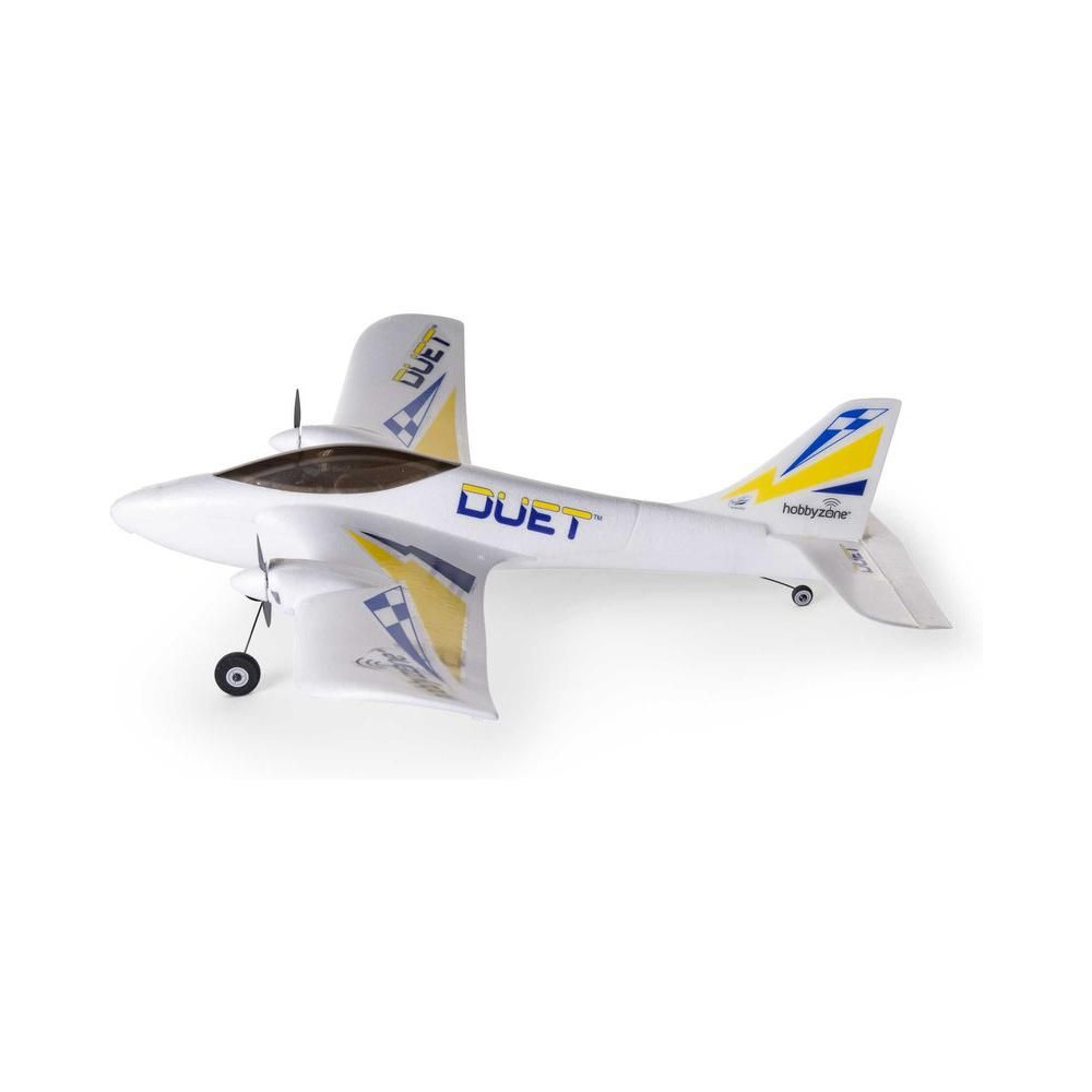 A modell teljesen összeszerelve és repülésre készen áll. A 150 mAh-s LiPol tápegység közvetlenül az adóban tölthető, 4 darab AA alkáli elemet tartalmaz. A Duet S 2 tartós habszivacsból készült, levehető futóműlábbal rendelkezik a fel- és leszálláshoz vagy kézi indításhoz és füves leszálláshoz.