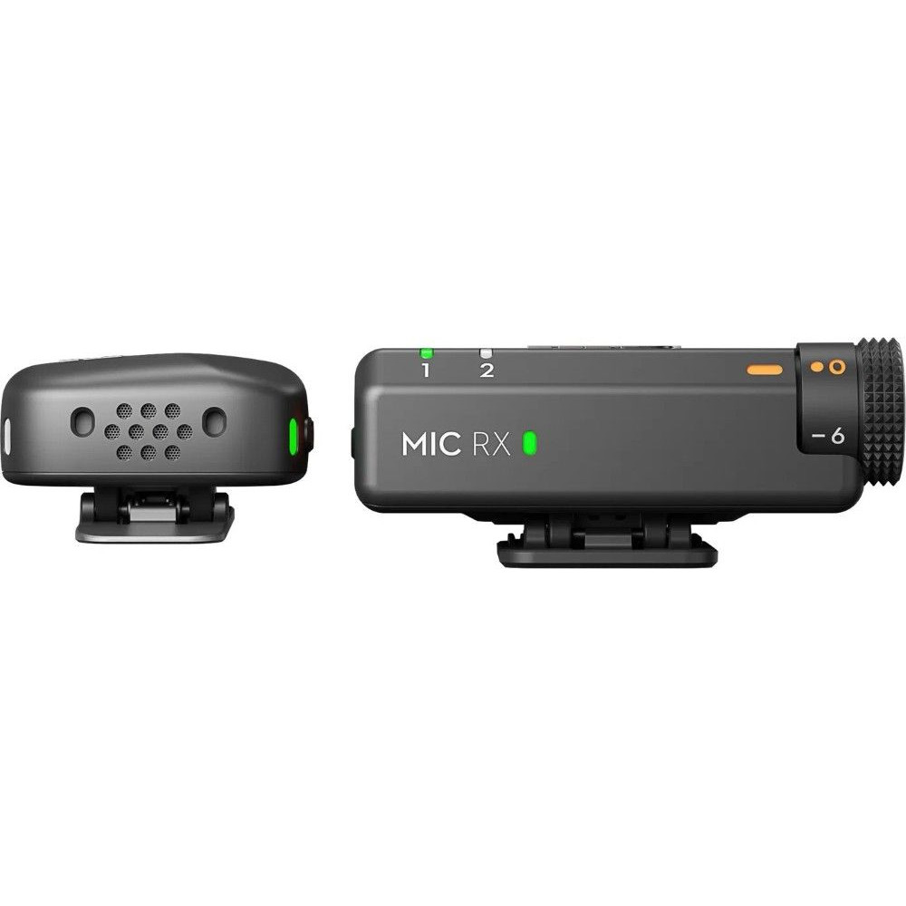Bekapcsoláskor a DJI Mic Mini automatikusan párosul és használatra kész, így a felvétel egyszerű és gyors . A felvevőmikrofon számos csatlakozást támogat, beleértve az USB-C és Lightning adaptereket is, így könnyen kompatibilis a kedvenc eszközeiddel, például okostelefonokkal, táblagépekkel vagy számítógépekkel. A vevőegység egy 3,5 mm-es TRS kábellel is csatlakoztatható a kamerádhoz, így könnyen szinkronizálható a kamera tápellátásával és továbbítható a hang.