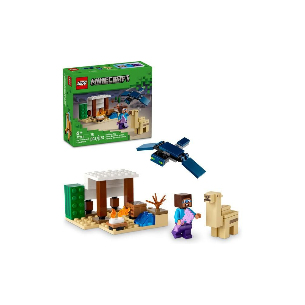 Ez a LEGO® Minecraft® készlet a 6 éves és annál idősebb fiatal építők számára a legelső készlet, amely a Minecraft világának sivatagi bioszféráját tartalmazza. A Steve és a sivatagi küldetés (21251) arra inspirálja a gyerekeket, hogy építsenek egy házat egy barátságtalan környezetben, amit aztán meg kell védeniük a repülő fantomtól.
