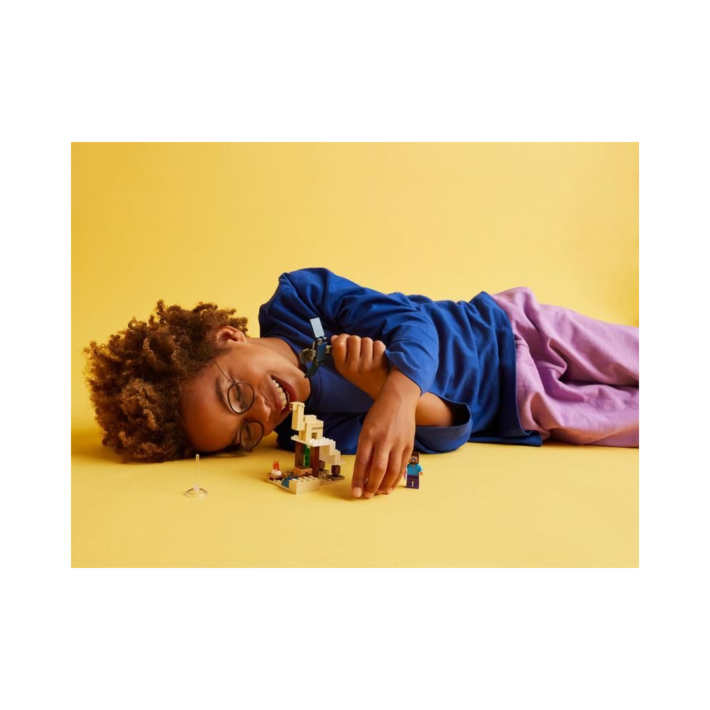 Ez a videojátékok szerelmeseinek szánt ajándék a LEGO® Minecraft® sorozat legelső készlete, amely egy sivatagi bioszférát ábrázol, ahol Steve a repülő fantom ellen harcol.