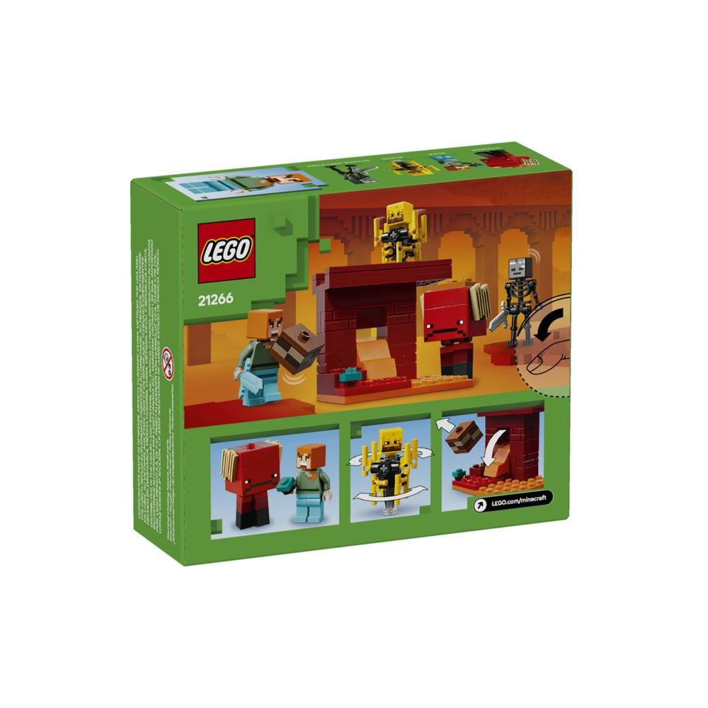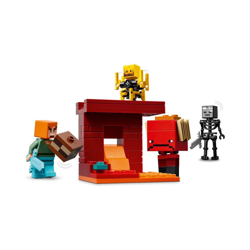 - Minecraft® Többfunkciós építőkészlet – Tartalmazza az Alvilági Erőd egy megépíthető részét, egy LEGO® Minecraft Alex figurát, egy sorvadás csontvázat, egy lángoló lényt és egy járókeresztet fegyverekkel és kiegészítőkkel.