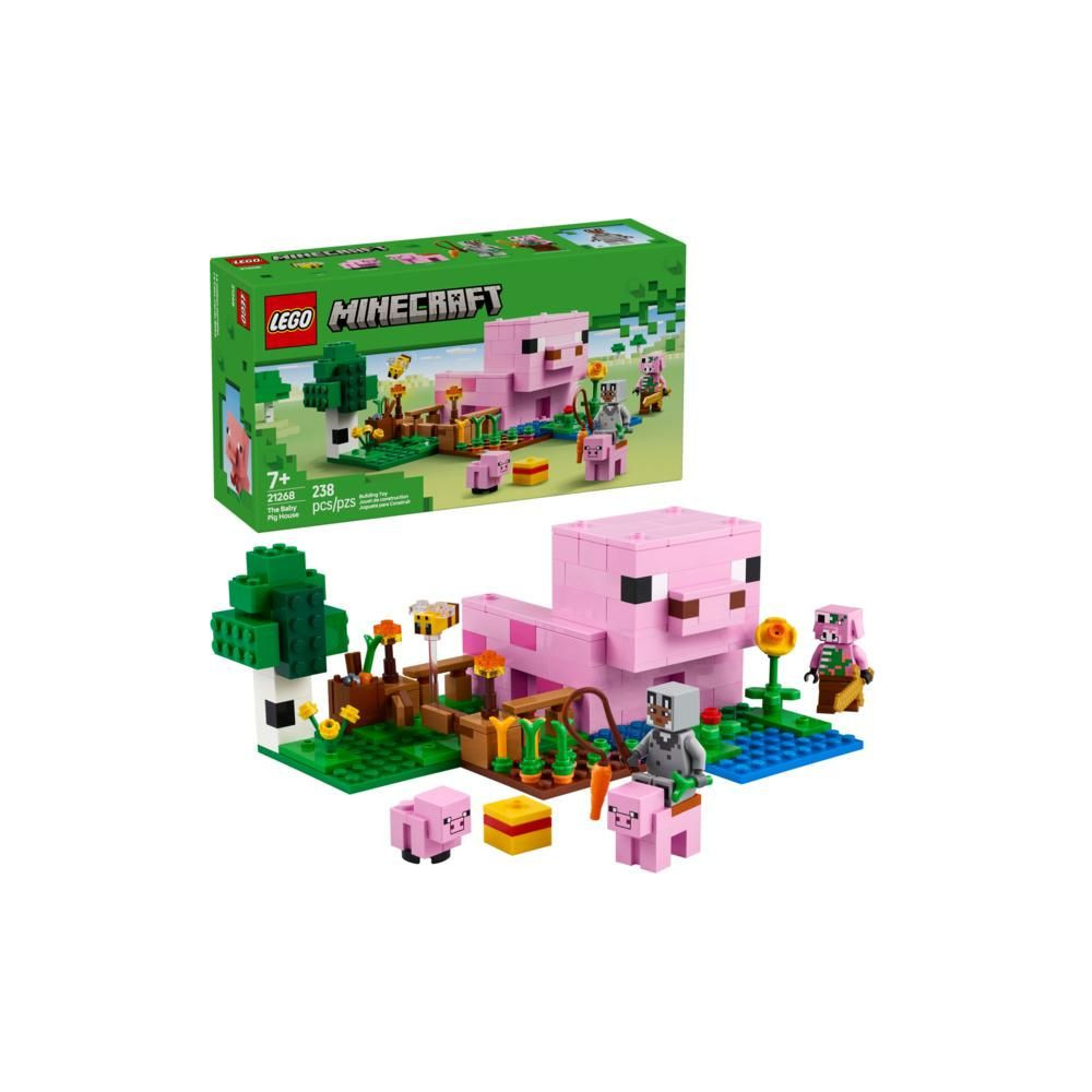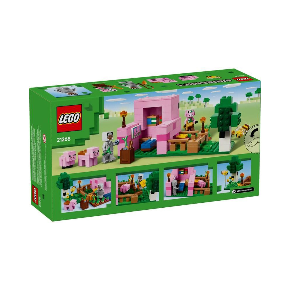 - LEGO® Minecraft® Malacpersely – A gyerekek malacpersely alakú házat építhetnek, amely tartalmaz egy mezőt, ahol burgonya és cékla nő, egy mezőt kapuval, amelyen a malac áthaladhat, és még sok minden mást.