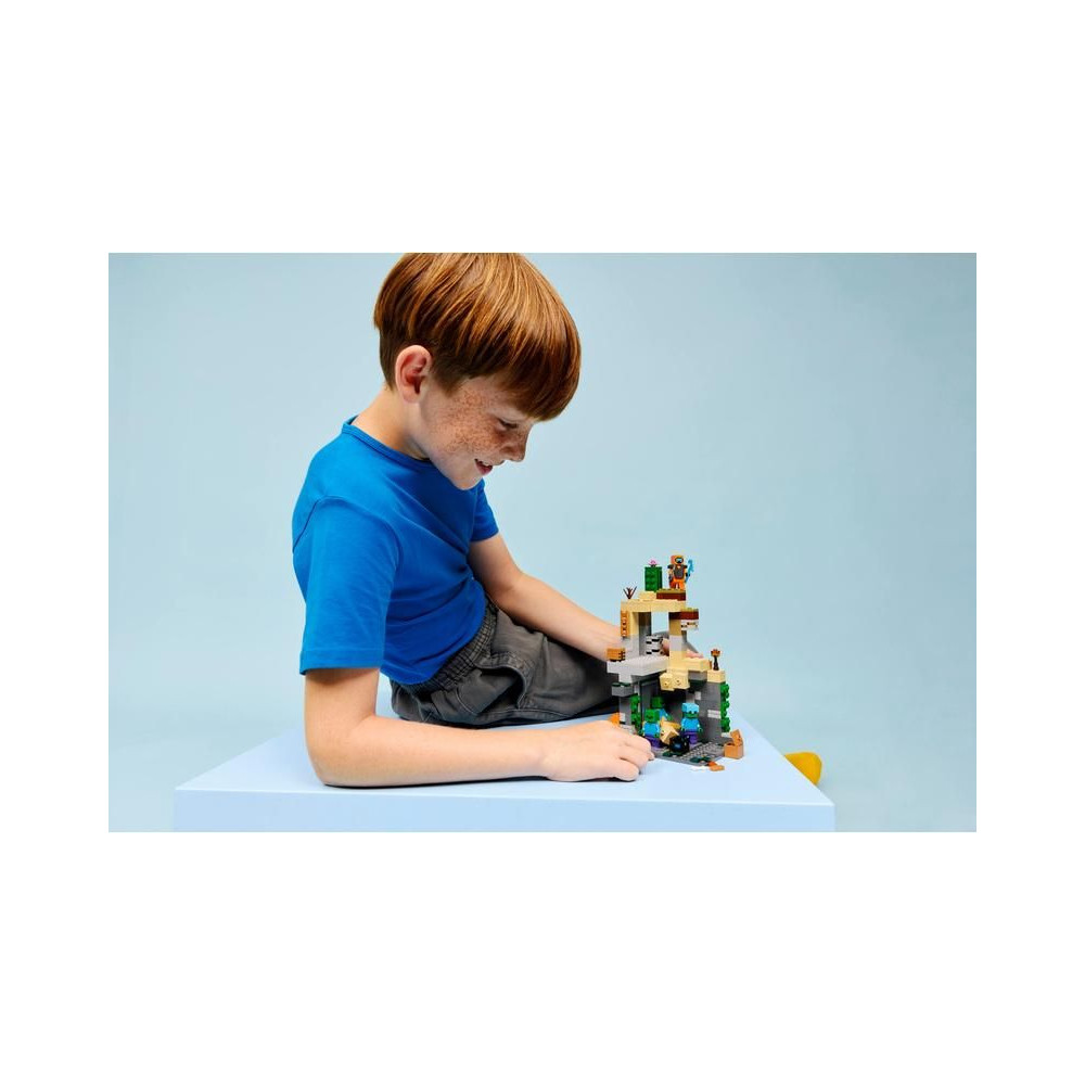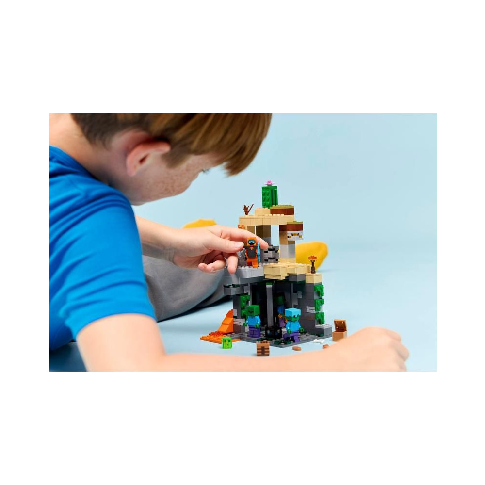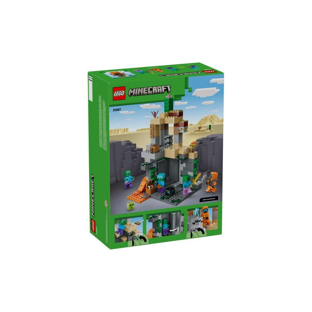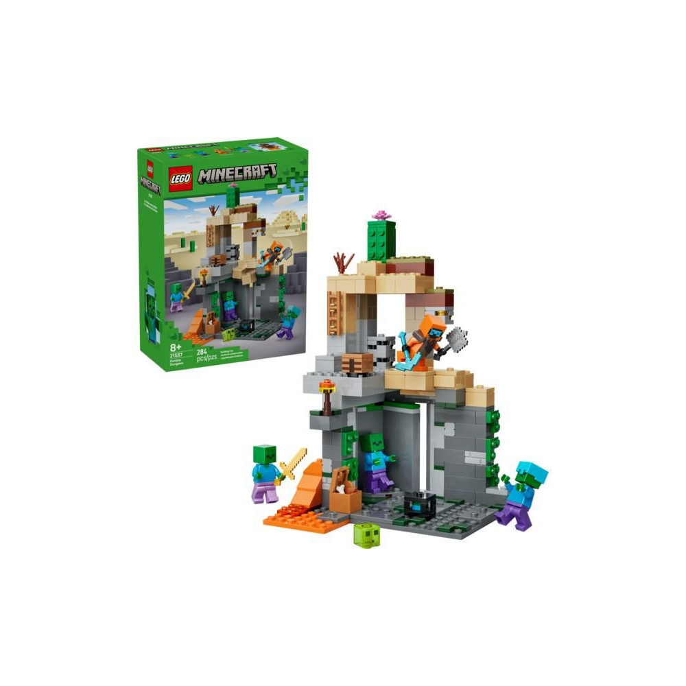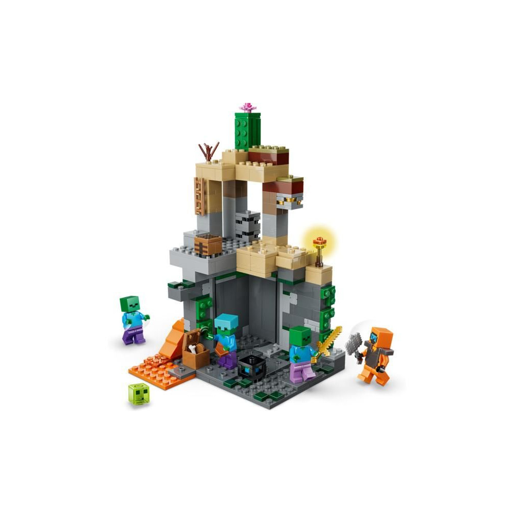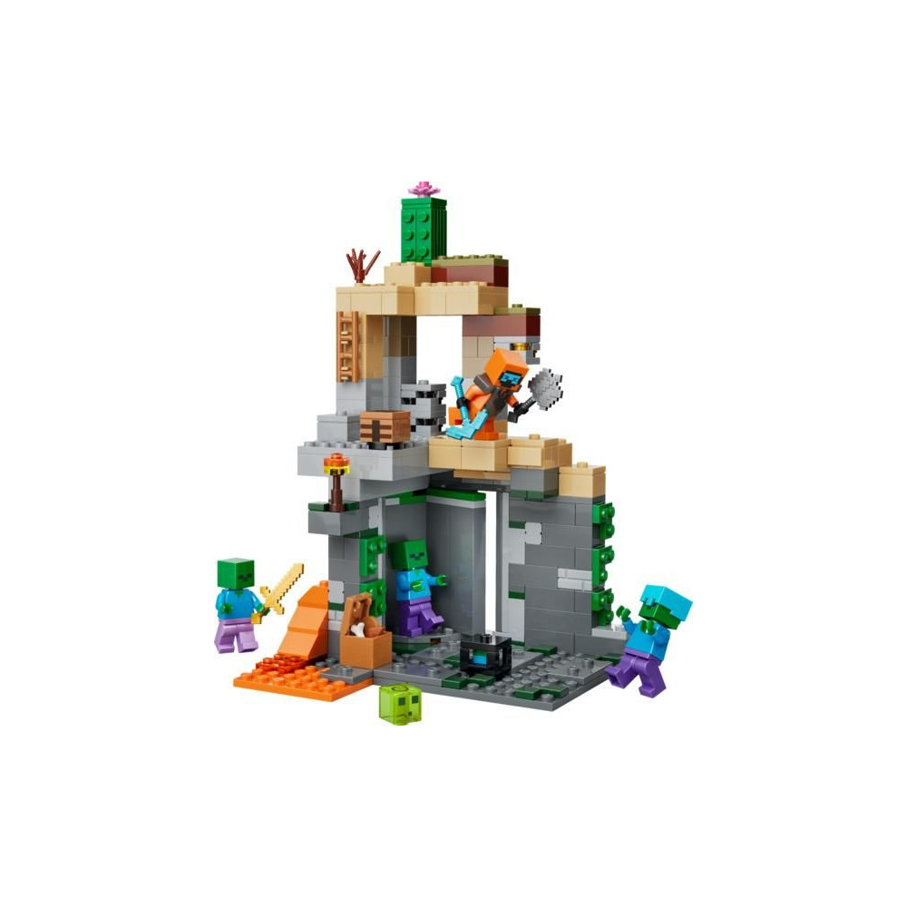 Nézz szembe a zombik hordájával a 8 éves vagy annál idősebb lányoknak és fiúknak szánt LEGO® Minecraft® LEGO® Minecraft® Zombi Barlang (21587) építőkészlettel. A gyerekek egy zombi kazamatába csöppennek, tele Minecraft világának szereplőivel, autentikus játékdíszekkel, valamint szórakoztató elemekkel és kiegészítőkkel. Az akciójáték a Minecraft sivatagi biomjában játszódik, a főszerepet pedig egy vándor játssza a pusztaságban, gyémántcsákánnyal, buzogánnyal és netherit páncéllal felszerelve. Tartalmaz továbbá nyálkát és 3 zombit, amelyek közül az egyiknek varázsnadrágja és aranykardja, a másiknak pedig gyémántsisakja van.
