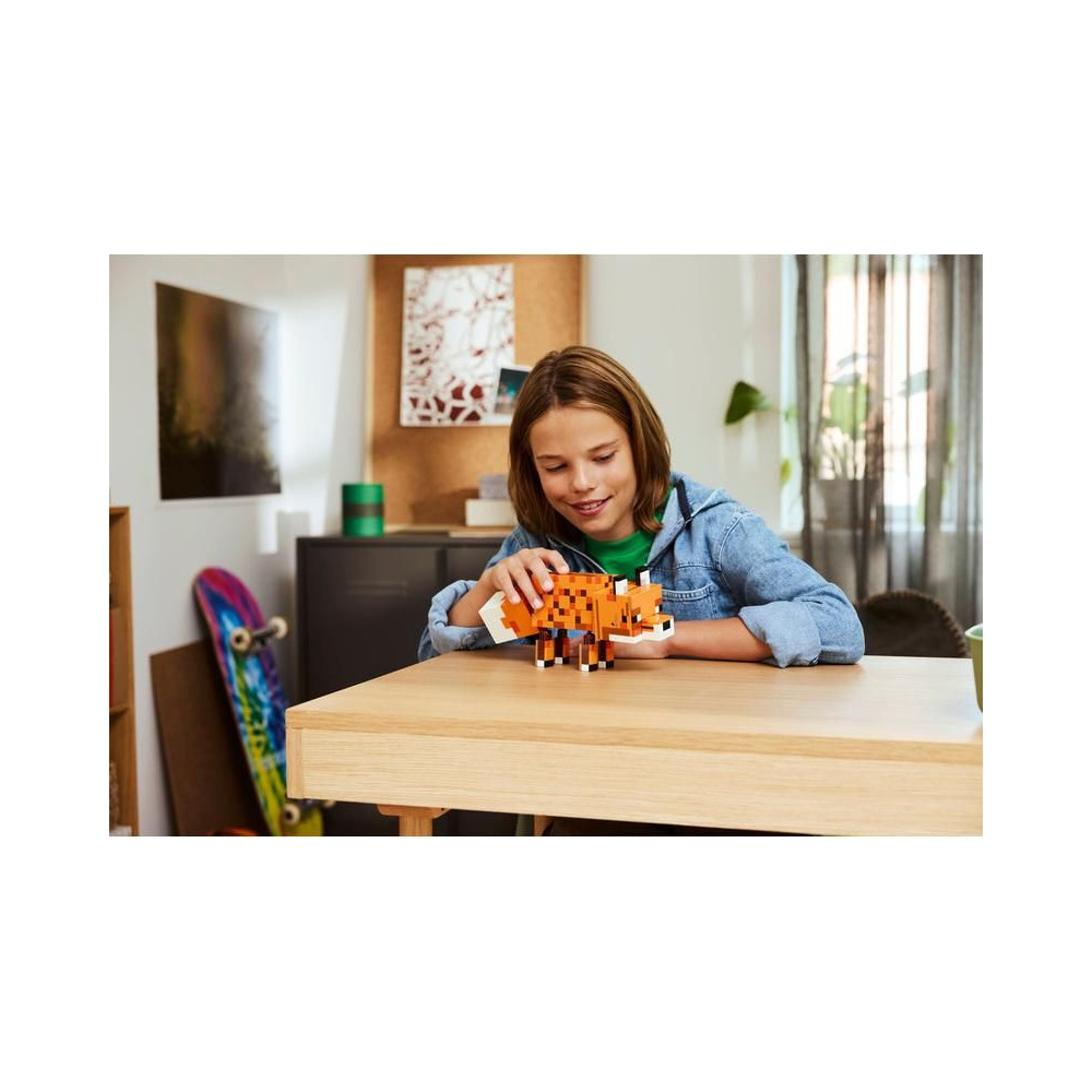 Ez a gyerekeknek szánt készlet hűen visszaadja a róka kinézetét a videojátékból, realisztikus részletekkel kiegészítve. A modell így nagyszerű ajándék a Minecraft rajongóinak és a videojáték-motívumú dekorációk szerelmeseinek. A rókának mozgatható lábai, forgó nyaka, pozícionálható feje és forgó szemei vannak, amelyeknek köszönhetően a szeme nyitva vagy csukva is tartható. A figura így olyan pozícióba helyezhető, mintha ébren lenne és állna, fejét hátrabillentve ülne, vagy aludna.
