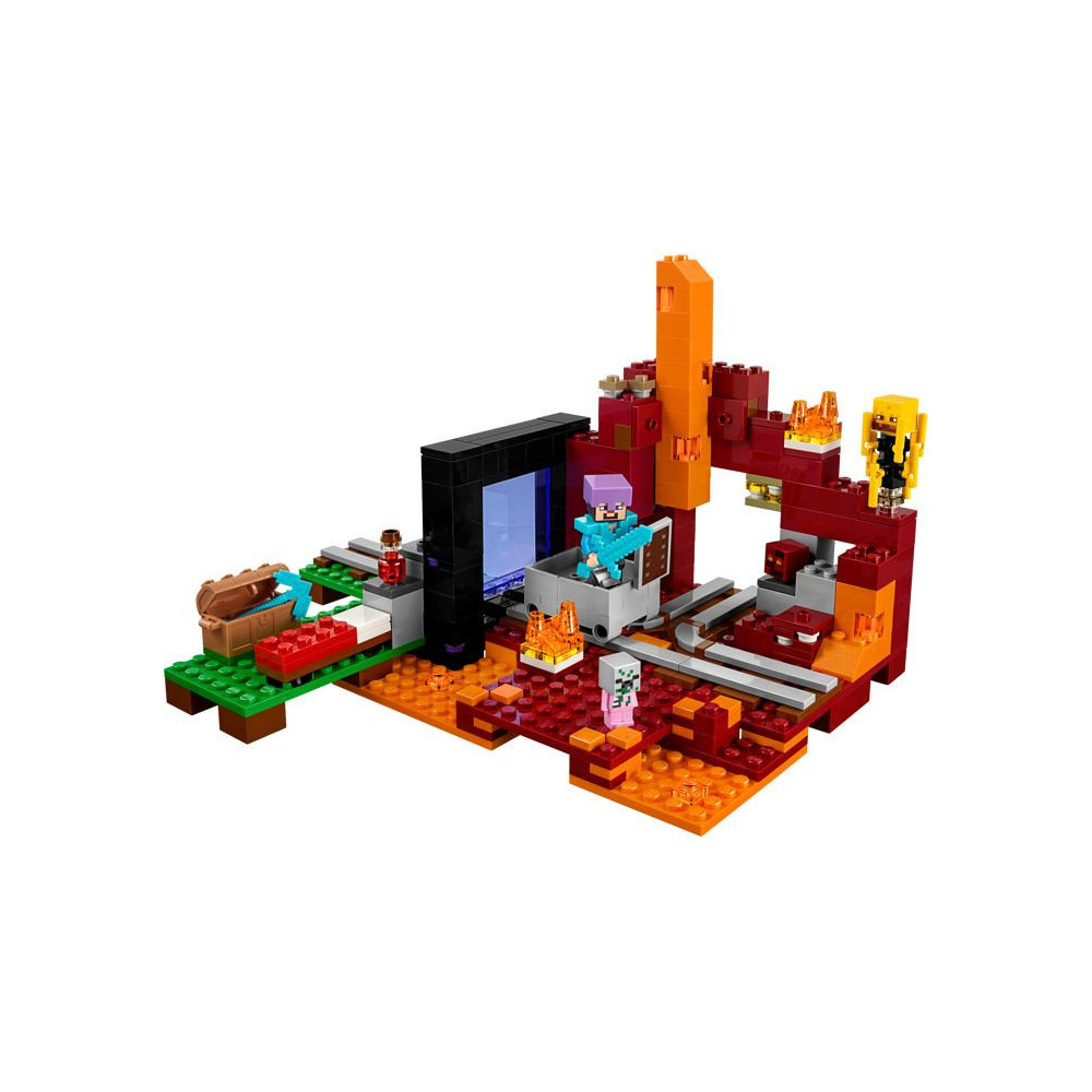 - Obsahuje minifigúrku Steva zo sveta LEGO® Minecraft™, navyše Blazea, malú magmatickú kocku a figúrku mláďaťa zombie prasacieho muža, ako aj figúrku Ghasta, ktorá strieľa disky s podobizňou ohnivej gule.