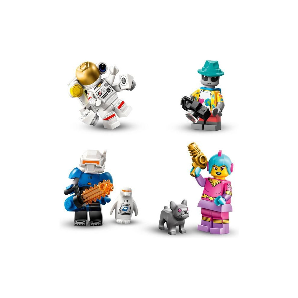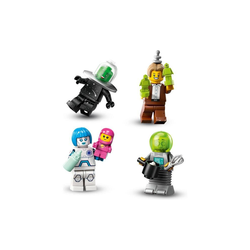 Minden csomag 1 LEGO űrbéli minifigurát tartalmaz a 12 figura közül: mutáns Blacktron, jégbolygó felfedező, szélhámos, robot komornyik, idegen Beetlezoid, retro űrhősnő, android ápolónő, rajongó repülő csészealj jelmezben, M-Tron erőművész, idegen turista, Orion és űrsétáló űrhajós.