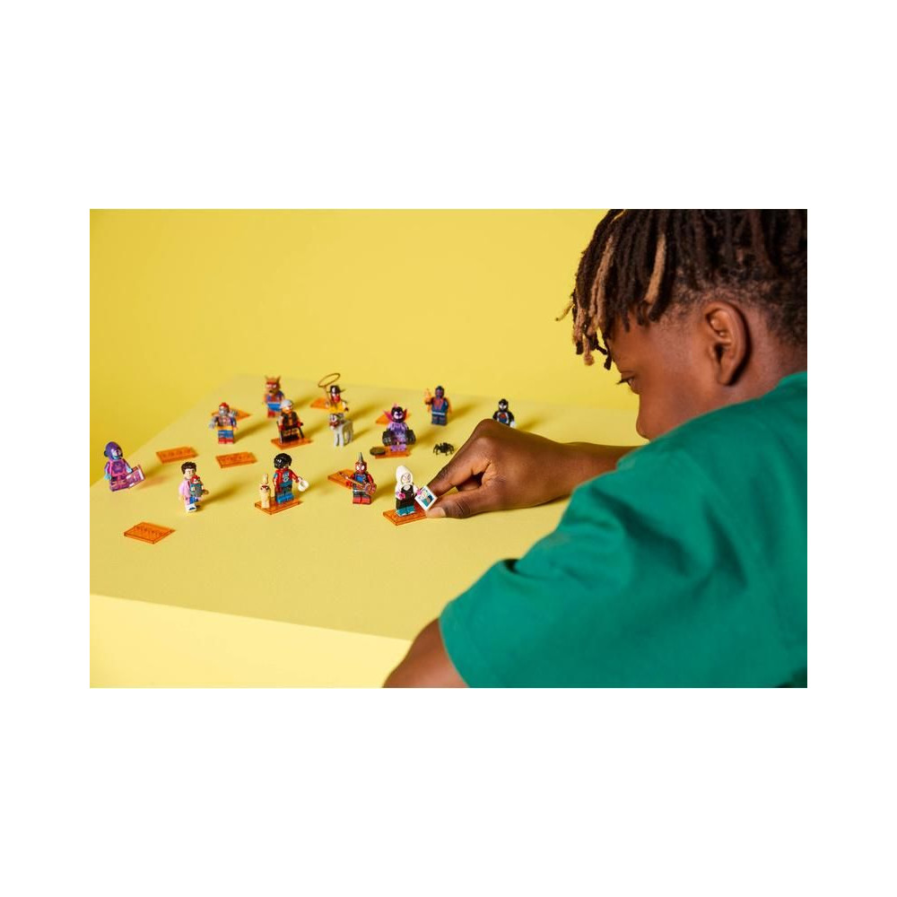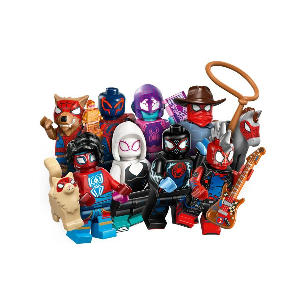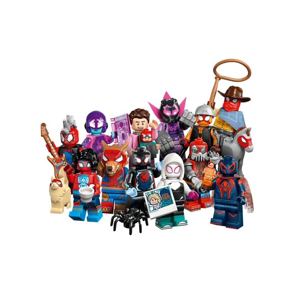 Minden meglepetésdobozban 1 gyűjthető minifigurát találsz a Pókember világából. Összesen 12 darabot gyűjthetsz belőlük: Miles Morales / Pókember, Miguel O'Hara / Pókember 2099, Gwen Stacy / Pókember Gwen, Hobie Brown / Pókember-Punk, Pavitr Prabhakar / Pókember India, Miles G. Morales / Prowler, Peter B. Parker / Pókember és May "Mayday" Parker, Margo Kess / Pókember-Byte, Peter Parker / Vérfarkas Pókember, Patrick O'Hara / Hálódobó, Petra Parker / Kiborg Póknő és Charlotte Webber / Nappók.
