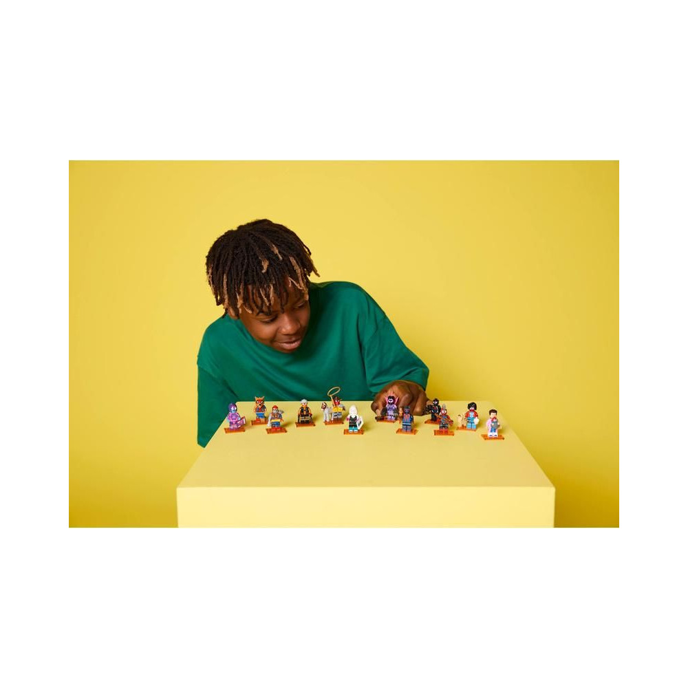 Mind a 12 megépíthető LEGO Marvel minifigura játékra kész, és mindegyik egy lezárt meglepetésdobozban érkezik, legalább egy kiegészítővel és egy gyűjtői információs füzettel.