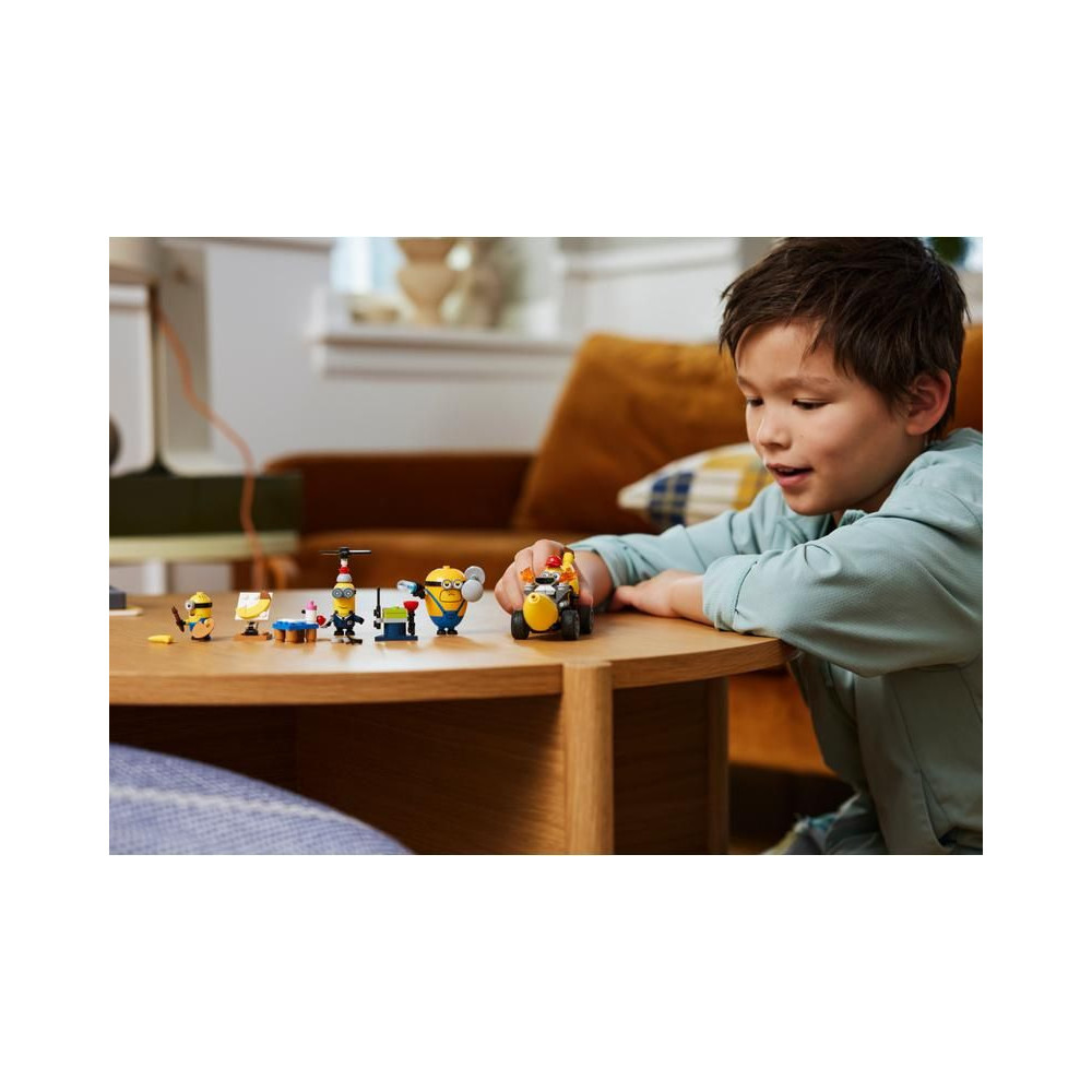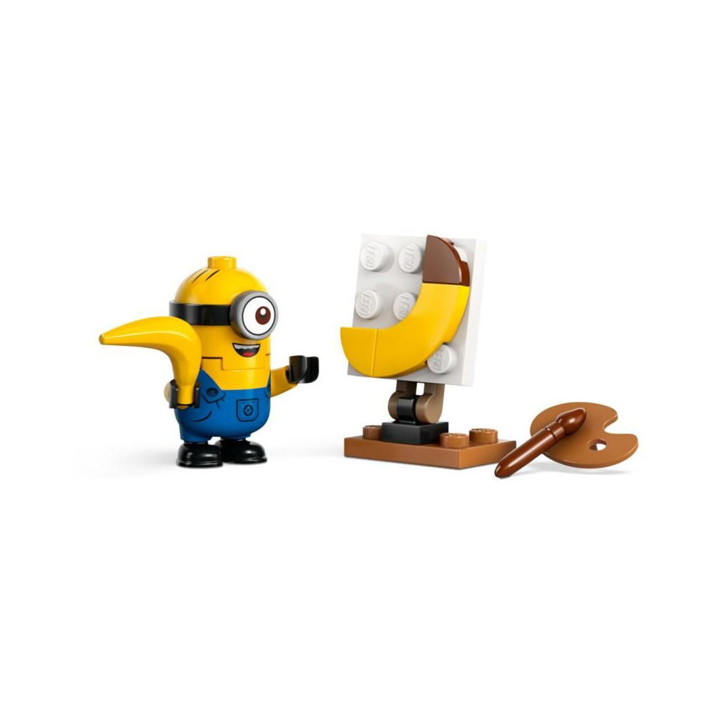 LEGO készletet keresel minionokkal, játékautót vagy egy szórakoztató ajándékot? A Mimoni építőkészlet és a vezetőüléssel, levehető motorral ellátott banánautó pont neked való! 4 db extrát és számos kiegészítőt tartalmaz. A nagy dobástól eltekintve Dave az egyik kezével felemeli a motort, a másikban pedig egy súlyzót tart. Mel egy banánt fest le, és Tim mellett az Anti-Villain League egyik titkosügynöke is repkedik egy propellerrel a fején és egy távirányítóval a kezében. A földön található a munkaállomása speciális eszközökkel, beleértve a röntgenszemüveget is. Ron mellett a szerelő pelenkákkal van szolgálatban a pelenkázópultnál. Nem hiányzik a szükséges felszerelés, beleértve egy fegyvert is, amivel használt pelenkákat lő. Az építők ráközelíthetnek és elforgathatják az építőkockákat a szórakoztató LEGO Builder alkalmazásban.