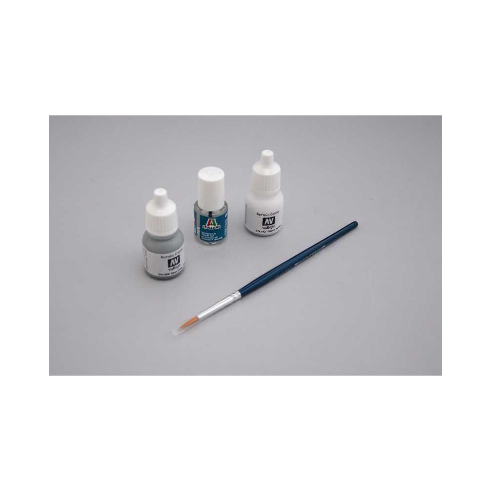 Tartalom: akrilfestékek, ecset, folyékony ragasztó és fogó a keretek alkatrészeinek kivágásához