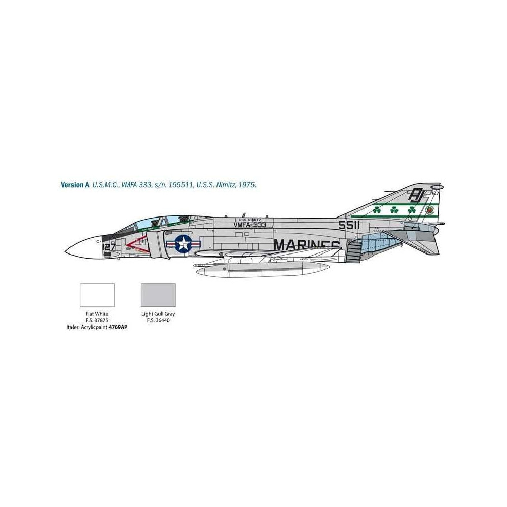 Az amerikai McDonnell Douglas tervezőcég által kifejlesztett F-4 Phantom II egy kétüléses, minden időjárási körülmények között működő szuperszonikus vadászbombázó. Az 1960-as években állt szolgálatba, és a mai napig a katonai repülés történetének egyik leghíresebb repülőgépeként tartják számon. Az eredeti terv kifejezetten az amerikai haditengerészet igényeihez készült, de végül az USA valamennyi szolgálata használta, és a világ más országaiban is jelentős kereskedelmi sikereket ért el. A haditengerészet számára tervezett eredeti változat 1966-ban esett át az első korszerűsítésen, amikor megkezdődött az F-4J Phantom gyártása, amely új rendszereket kapott, hogy javítsa harci képességeit a légi harcban és a földi célok elleni támadásokban. Az avionika is jelentős átalakuláson ment keresztül, és a repülőgép egy innovatív tűzvezető rendszert is kapott, amely look-down/shoot-down képességgel (a célpontok magasságból történő támadásának képessége a földi háttér előtt) rendelkezik. A General Electric J-79-10 típusú, továbbfejlesztett, nagy teljesítményű sugárhajtómű-párnak köszönhetően az új Phantom elérte az 1240 csomós végsebességet. A sebesség, a tolóerő és a megbízhatóság voltak a Phantom II fő erősségei, amelyek képesek voltak ellensúlyozni a repülőgép nagy méretéből adódó gyengébb manőverezőképességét.