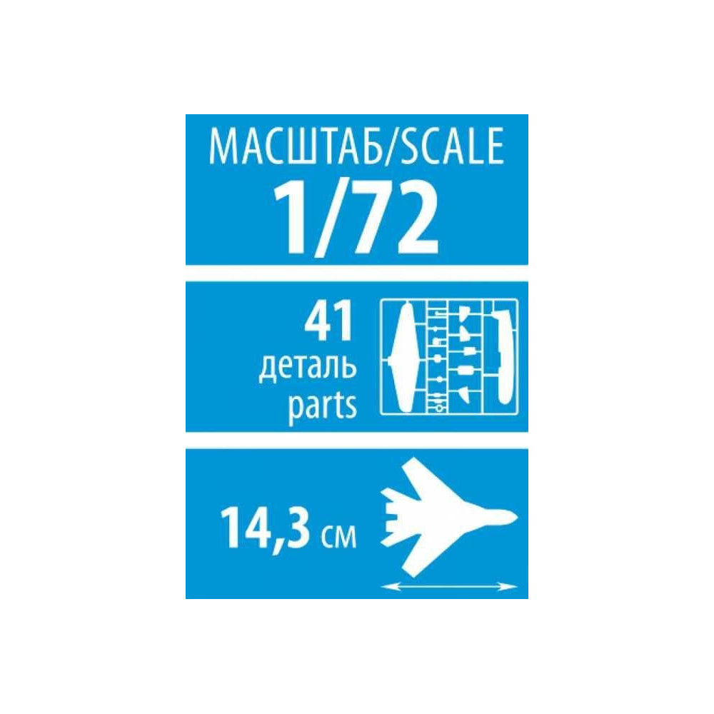 Repülőgépmodell összeragasztásához. Méret: 1:72; 14,3 cm. Alkatrészek száma: 41.
