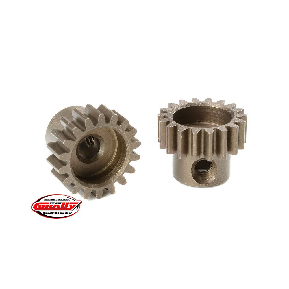 Rövid változat, anyaga edzett acél, 18 fog, fogmodul 0,6M. Motortengely átmérője 3,17 mm (1/8 in). A TEAM CORALLY fogaskerekek marással készülnek, majd edzettek a nagy pontosságú fogaskerekek biztosítása érdekében. Minden TEAM CORALLY fogaskerék az EU-ban készül.Více informací