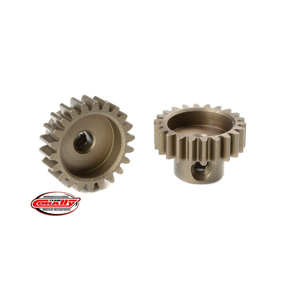 Rövid változat, anyaga edzett acél, 22 fog, fogmodul 0,6M. Motortengely átmérője 3,17 mm (1/8 in). A TEAM CORALLY fogaskerekek marással készülnek, majd edzettek a nagy pontosságú fogaskerekek biztosítása érdekében. Minden TEAM CORALLY fogaskerék az EU-ban készül.Více informací