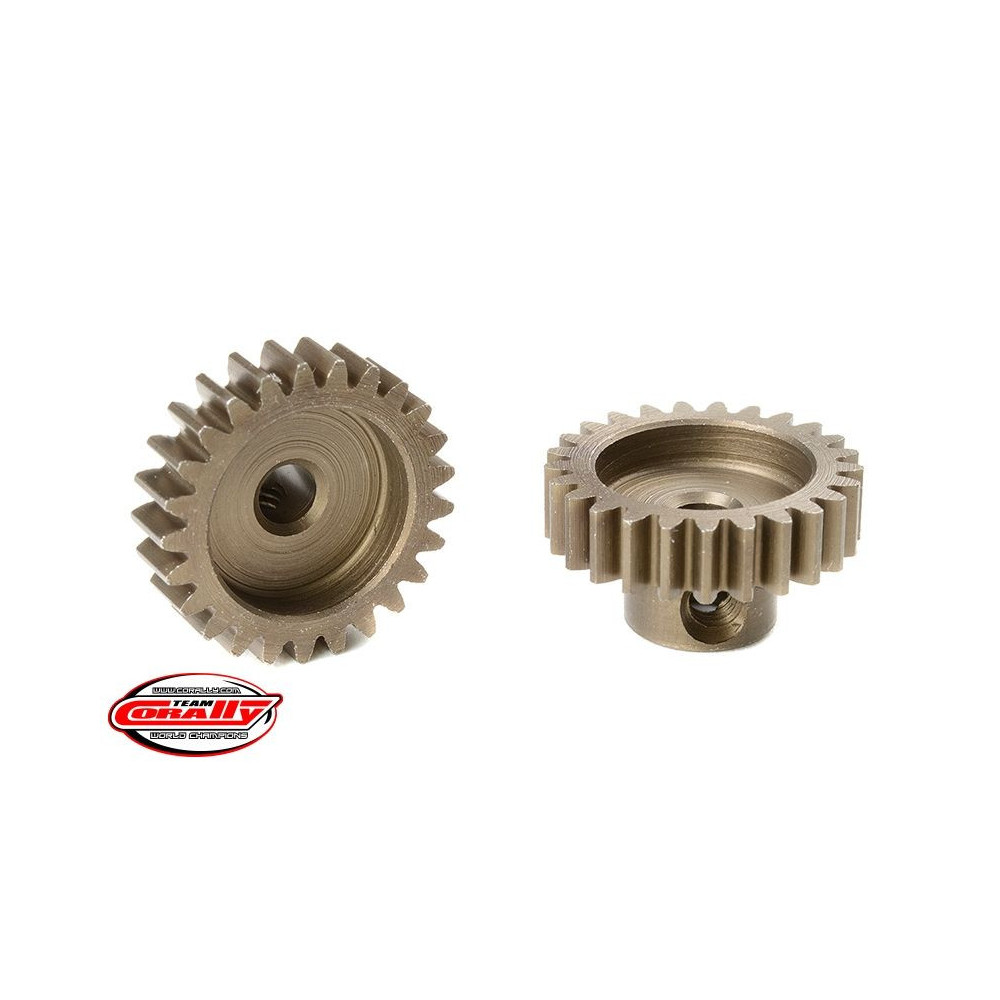 Rövid változat, anyaga edzett acél, 25 fog, fogmodul 0,6M. Motortengely átmérője 3,17 mm (1/8 in). A TEAM CORALLY fogaskerekek marással készülnek, majd edzettek a nagy pontosságú fogaskerekek biztosítása érdekében. Minden TEAM CORALLY fogaskerék az EU-ban készül.Více informací
