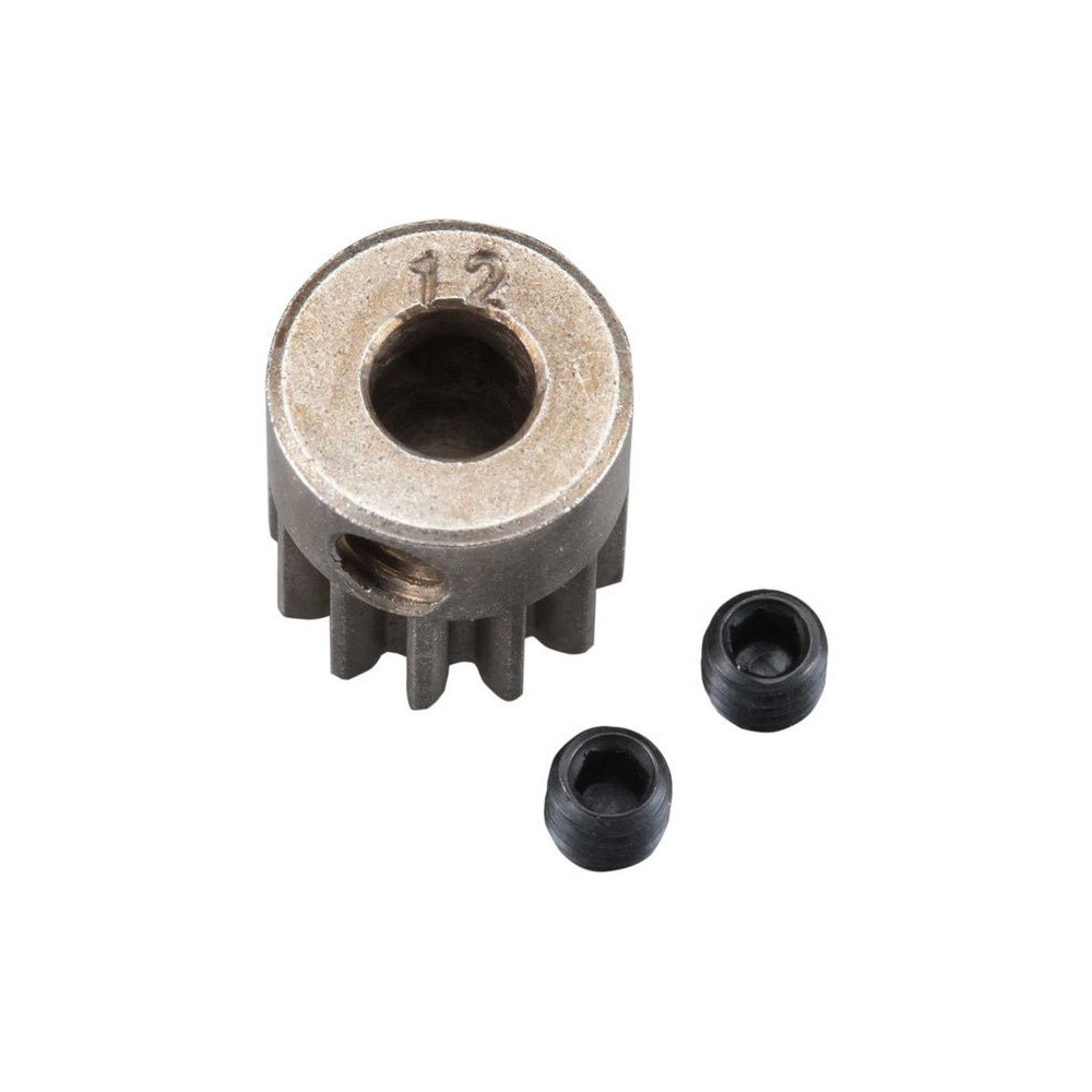 Tengelyes fogaskerék 5 mm-es tengelyhez 12 foggal és 32DP ( 0,8 mm ) fogazott modullal RC modellautókhoz. Szinterezett acélból készült. Csiga mellékelve.