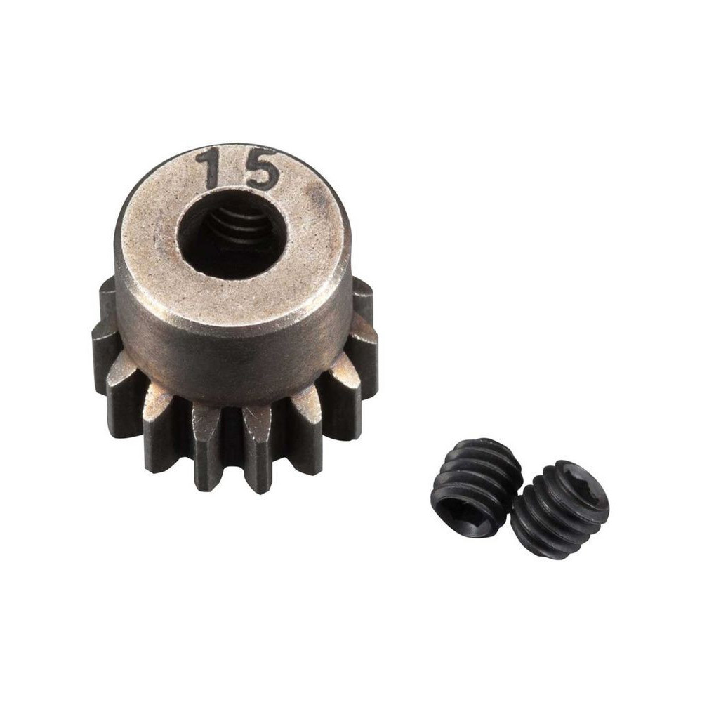 Tengelyes fogaskerék 5 mm-es tengelyhez 15 foggal és 32DP ( 0,8 mm ) fogazott modullal RC modellautókhoz. Szinterezett acélból készült. Csiga mellékelve.