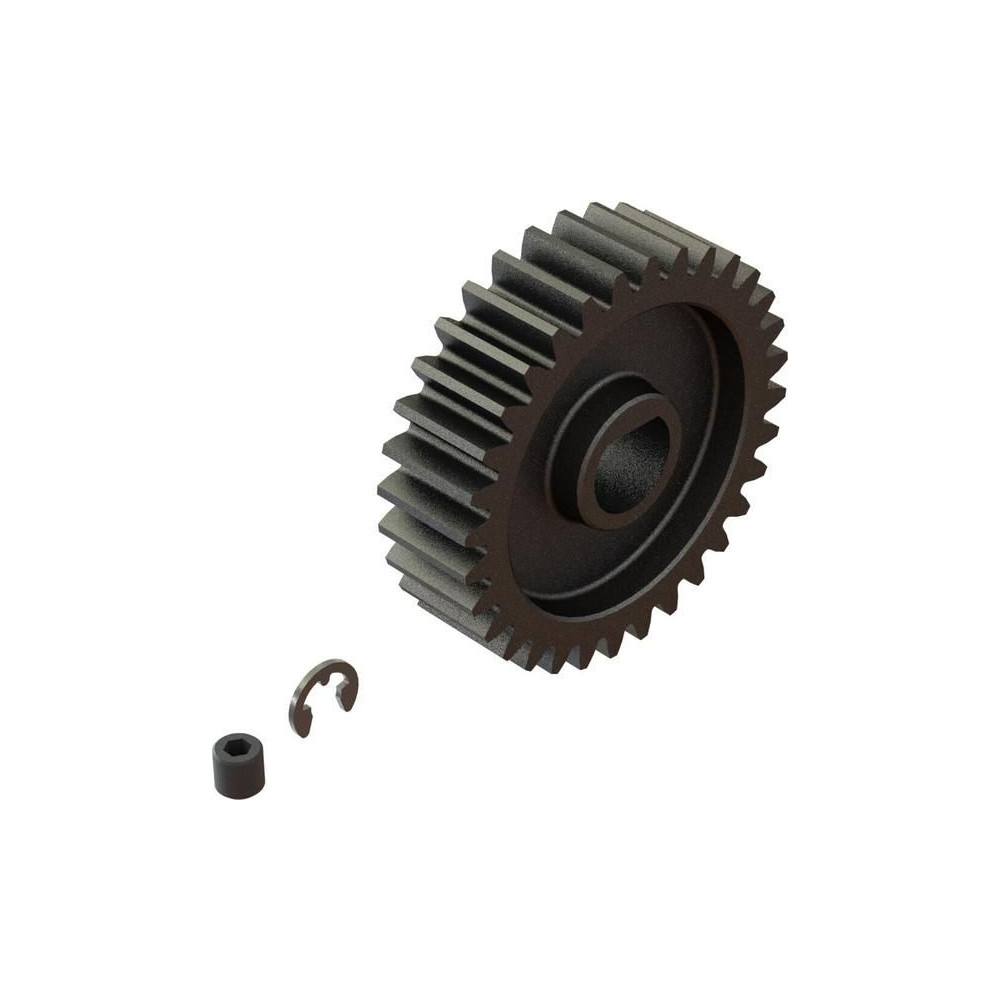 Arrma fogaskerék 5 mm-es tengelyhez, 32 foggal és 1 mm-es fogazású modullal RC autómodellekhez. Pontos fogprofil és sima futás. "D" alakú biztonsági furat a motortengely profiljának megfelelően. M4x4 mm-es állítócsavar. Zégergyűrű (e-clip) 3.2mm.