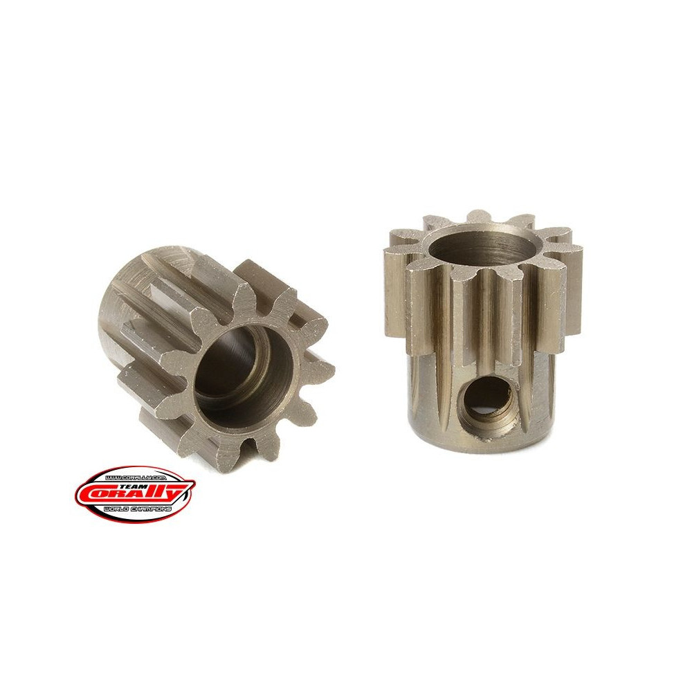 Rövid kivitel, anyaga edzett acél, 11 fog, fogmodul M1.0. 5,0 mm átmérőjű motortengelyhez. A TEAM CORALLY fogaskerekek marással készülnek, majd edzettek, ami nagy fogaskerék pontosságot biztosít. Minden TEAM CORALLY fogaskerék az EU-ban készül.Více informací
