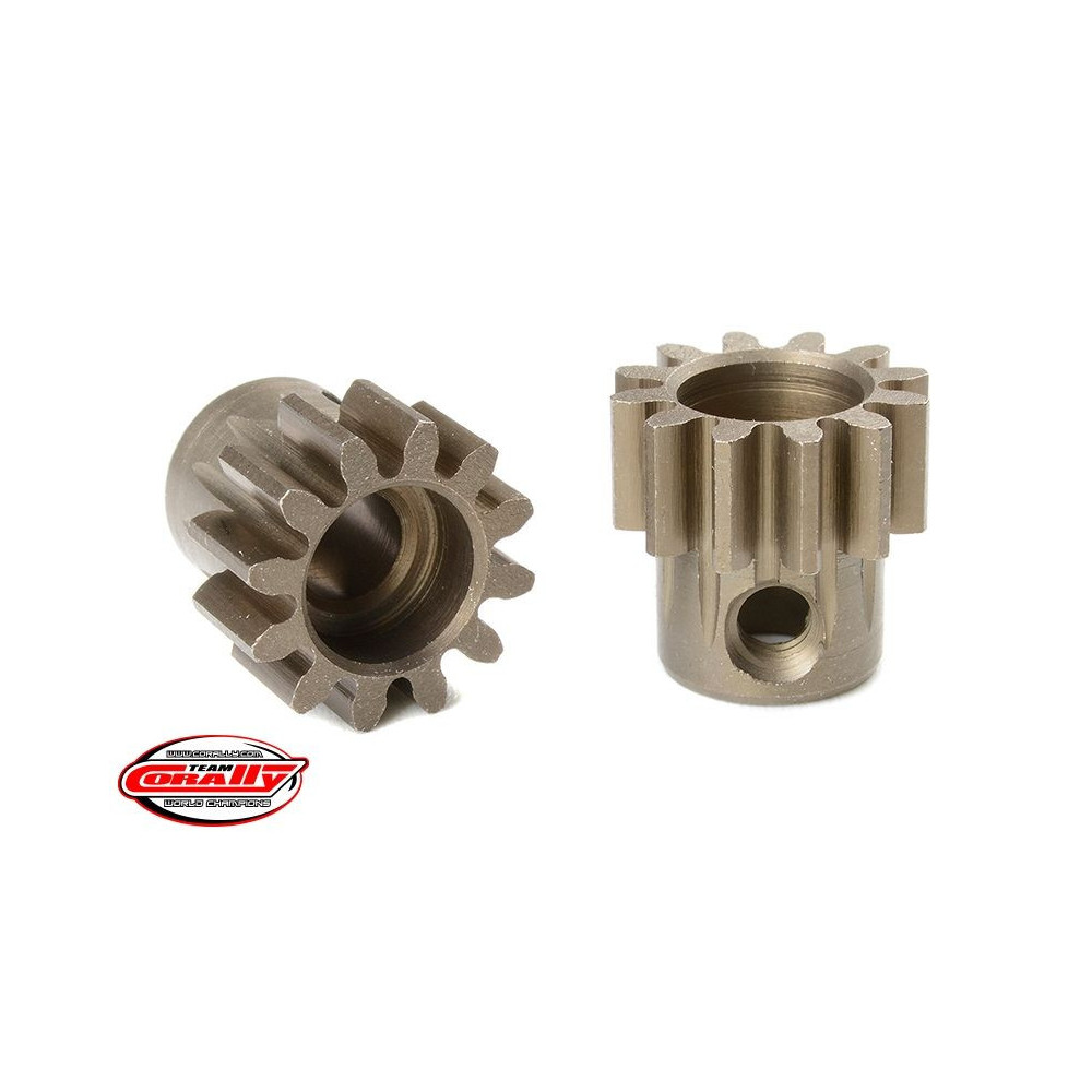 Rövid változat, anyaga edzett acél, 12 fog, fogmodul M1.0. 5,0 mm átmérőjű motortengelyhez. A TEAM CORALLY fogaskerekek marással készülnek, majd edzettek, ami nagy fogaskerék pontosságot biztosít. Minden TEAM CORALLY fogaskerék az EU-ban készül.Více informací