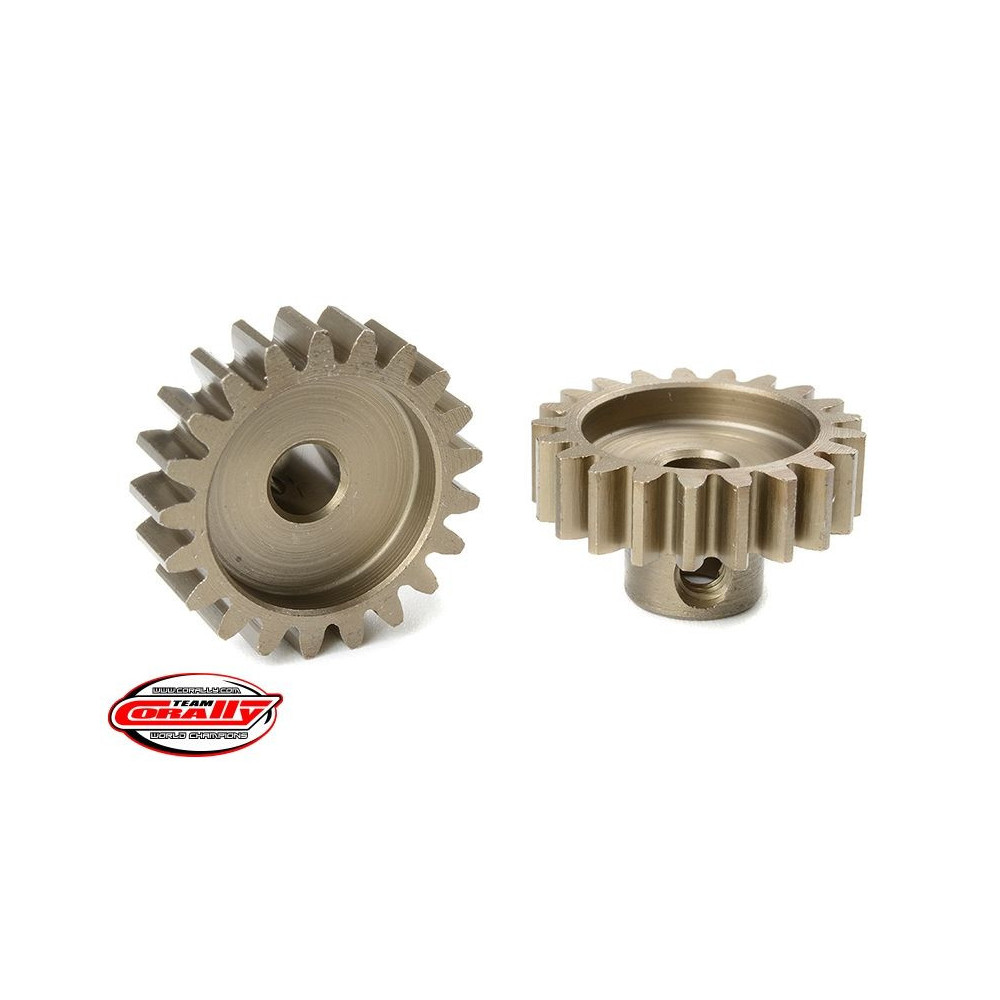 Rövid változat, anyaga edzett acél, 21 fog, fogmodul M1.0. 5,0 mm átmérőjű motortengelyhez. A TEAM CORALLY fogaskerekek marással készülnek, majd edzettek, ami nagy fogaskerék pontosságot biztosít. Minden TEAM CORALLY fogaskerék az EU-ban készül.Více informací