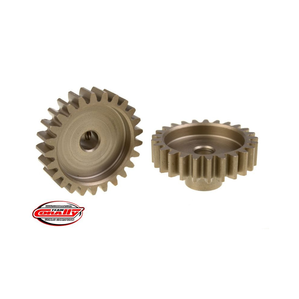 Rövid változat, anyaga edzett acél, 25 fog, fogmodul M1.0. 5,0 mm átmérőjű motortengelyhez. A TEAM CORALLY fogaskerekek marással készülnek, majd edzettek, ami nagy fogaskerék pontosságot biztosít. Minden TEAM CORALLY fogaskerék az EU-ban készül.