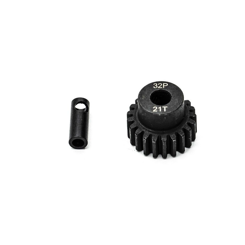 21 fogú acél motoros fogaskerék, 32DP modul 5 mm-es furattal és 3,17 mm-es adapterrel.