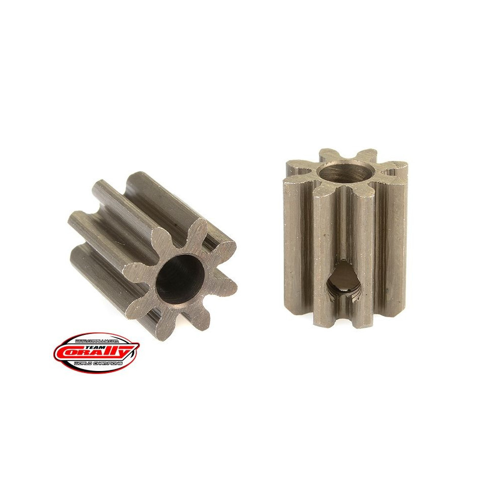Rövid változat, anyaga edzett acél, 8 fog, fogmodul 32DP. 3,17 mm (1/8 in) átmérőjű motortengelyhez. A TEAM CORALLY fogaskerekek marással készülnek, majd edzettek a nagy pontosságú fogaskerekek biztosítása érdekében. Minden TEAM CORALLY fogaskerék az EU-ban készül.