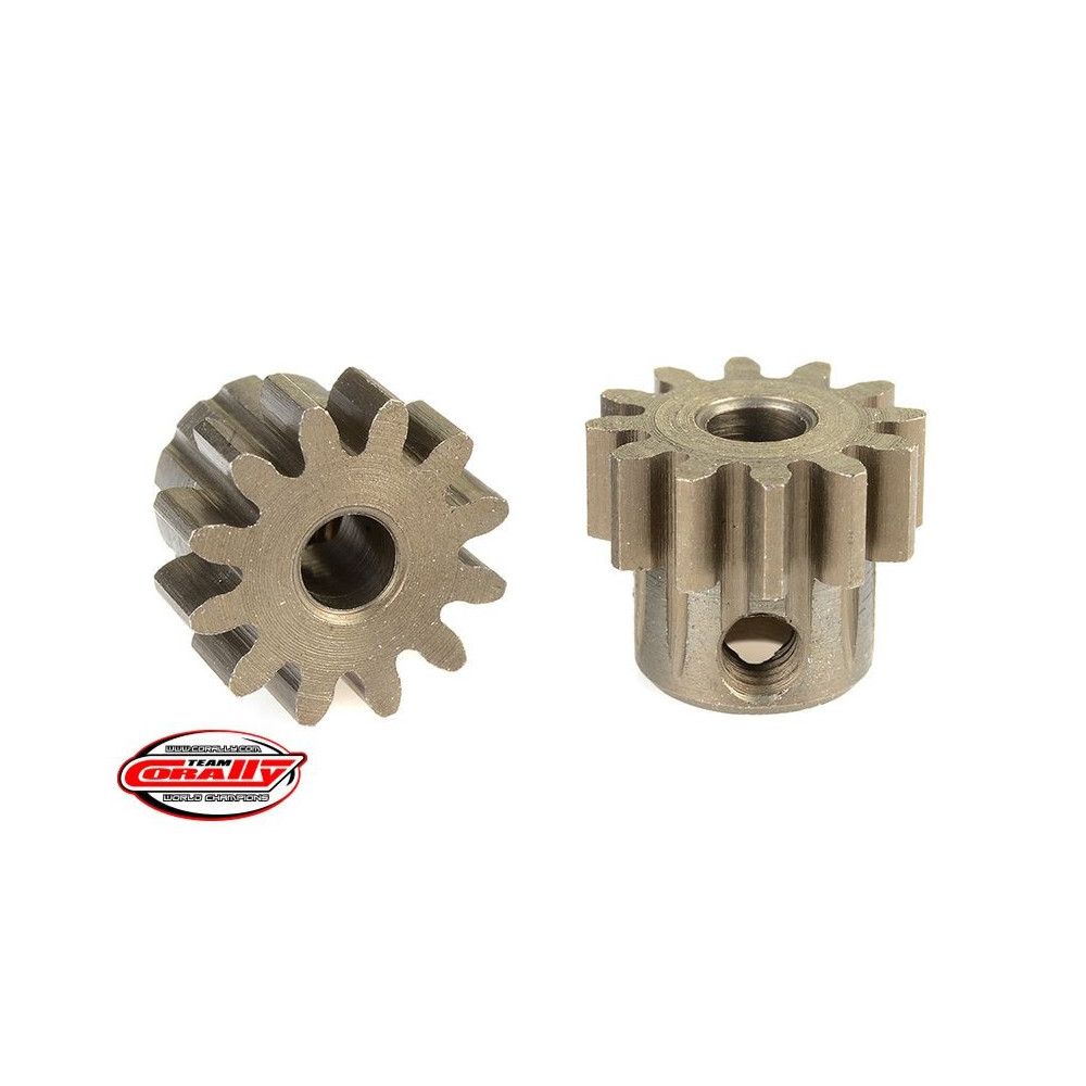Rövid változat, anyaga edzett acél, 12 fog, fogmodul 32DP. 3,17 mm (1/8 in) átmérőjű motortengelyhez. A TEAM CORALLY fogaskerekek marással készülnek, majd edzettek a nagy pontosságú fogaskerekek biztosítása érdekében. Minden TEAM CORALLY fogaskerék az EU-ban készül.Více informací
