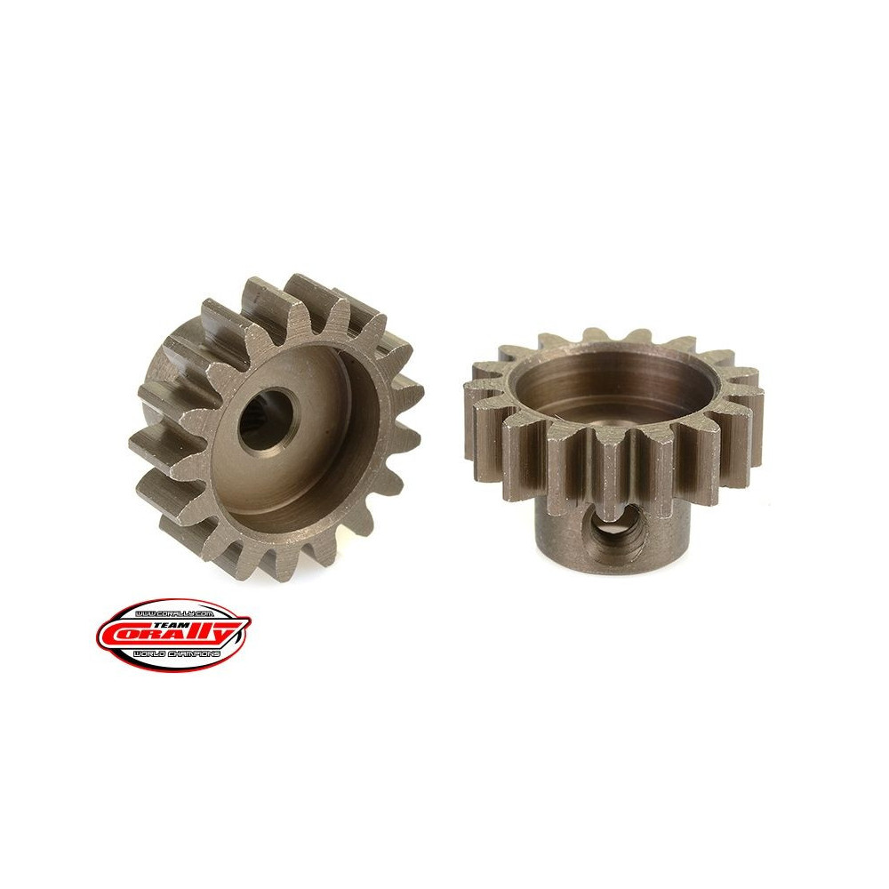Rövid változat, anyaga edzett acél, 17 fog, fogmodul 32DP. 3,17 mm (1/8 in) átmérőjű motortengelyhez. A TEAM CORALLY fogaskerekek marással készülnek, majd edzettek a nagy pontosságú fogaskerekek biztosítása érdekében. Minden TEAM CORALLY fogaskerék az EU-ban készül.Více informací