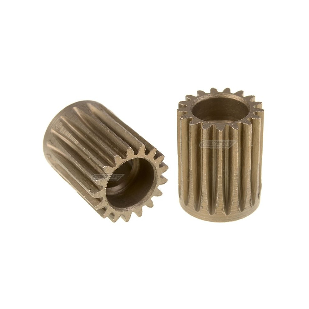 Rövid változat, anyaga edzett acél, 17 fog, fogmodul 48DP. 5,00 mm átmérőjű motortengelyhez. A TEAM CORALLY fogaskerekek marással készülnek, majd edzettek, ami biztosítja a fogaskerekek nagyfokú pontosságát. Minden TEAM CORALLY fogaskerék Európában készül.