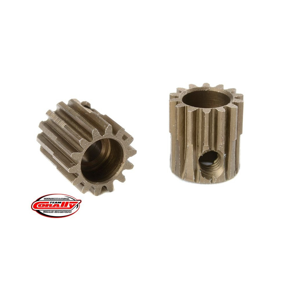 Rövid változat, anyaga edzett acél, 14 fog, fogmodul 48DP. 3,17 mm (1/8 in) átmérőjű motortengelyhez. A TEAM CORALLY fogaskerekek marással készülnek, majd edzettek a nagy pontosságú fogaskerekek biztosítása érdekében. Minden TEAM CORALLY fogaskerék az EU-ban készül.Více informací