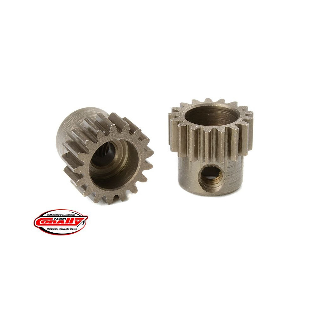 Rövid változat, anyaga edzett acél, 17 fog, fogmodul 48DP. 3,17 mm (1/8 in) átmérőjű motortengelyhez. A TEAM CORALLY fogaskerekek marással készülnek, majd edzettek a nagy pontosságú fogaskerekek biztosítása érdekében. Minden TEAM CORALLY fogaskerék az EU-ban készül.Více informací