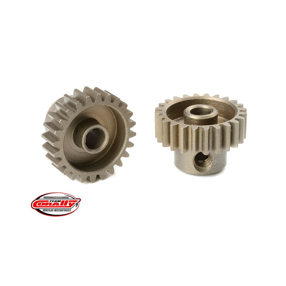 Rövid változat, anyaga edzett acél, 24 fog, fogmodul 48DP. 3,17 mm (1/8 in) átmérőjű motortengelyhez. A TEAM CORALLY fogaskerekek marással készülnek, majd edzettek a nagy pontosságú fogaskerekek biztosítása érdekében. Minden TEAM CORALLY fogaskerék az EU-ban készül.Více informací