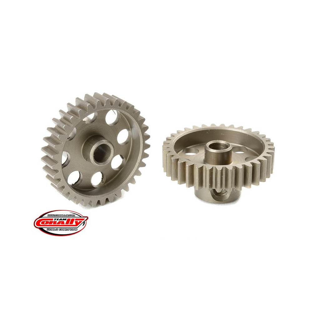 Rövid változat, anyaga edzett acél, 33 fog, fogmodul 48DP. 3,17 mm (1/8 in) átmérőjű motortengelyhez. A TEAM CORALLY fogaskerekek marással készülnek, majd edzettek a nagy pontosságú fogaskerekek biztosítása érdekében. Minden TEAM CORALLY fogaskerék az EU-ban készül.Více informací