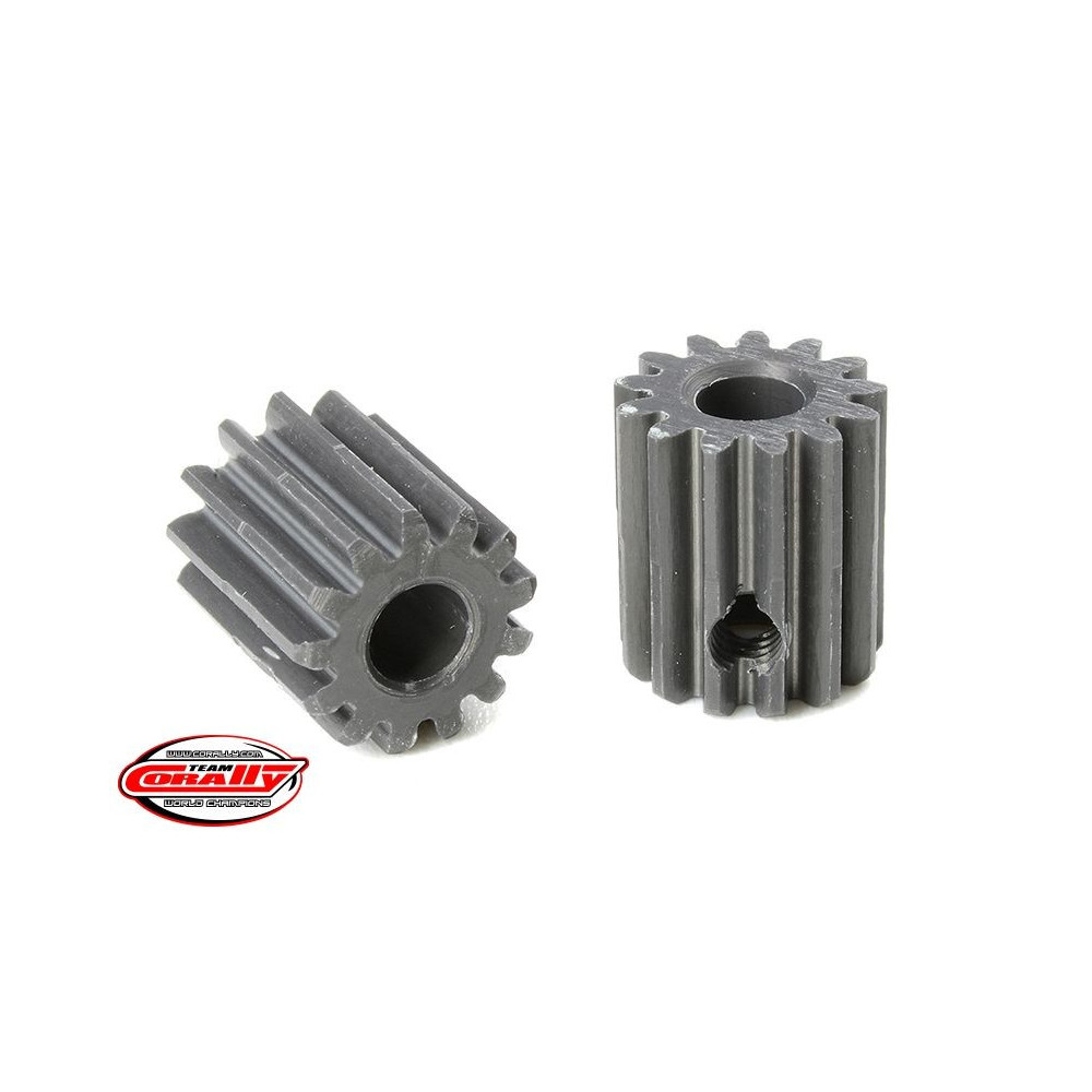 Rövid változat, anyaga edzett alumínium 7075 T6, 13 fog, fogmodul 48DP. 3,17 mm (1/8 in) átmérőjű motortengelyhez. A TEAM CORALLY fogaskerekek marással készülnek, majd edzettek a nagy pontosságú fogaskerekek biztosítása érdekében. Minden TEAM CORALLY fogaskerék az EU-ban készül.Více informací