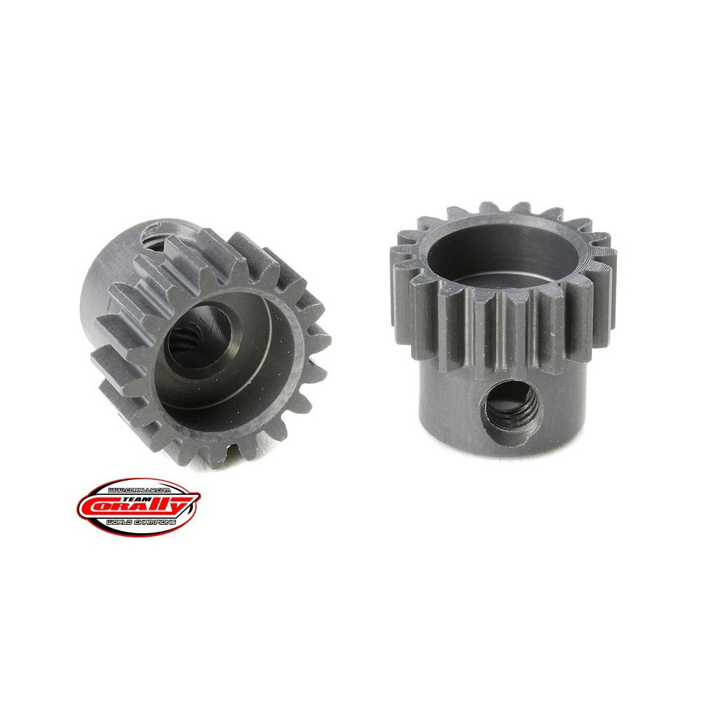 Rövid változat, anyaga edzett alumínium 7075 T6, 18 fog, fogmodul 48DP. 3,17 mm (1/8 in) átmérőjű motortengelyhez. A TEAM CORALLY fogaskerekek marással készülnek, majd edzettek a nagy pontosságú fogaskerekek biztosítása érdekében. Minden TEAM CORALLY fogaskerék az EU-ban készül.Více informací