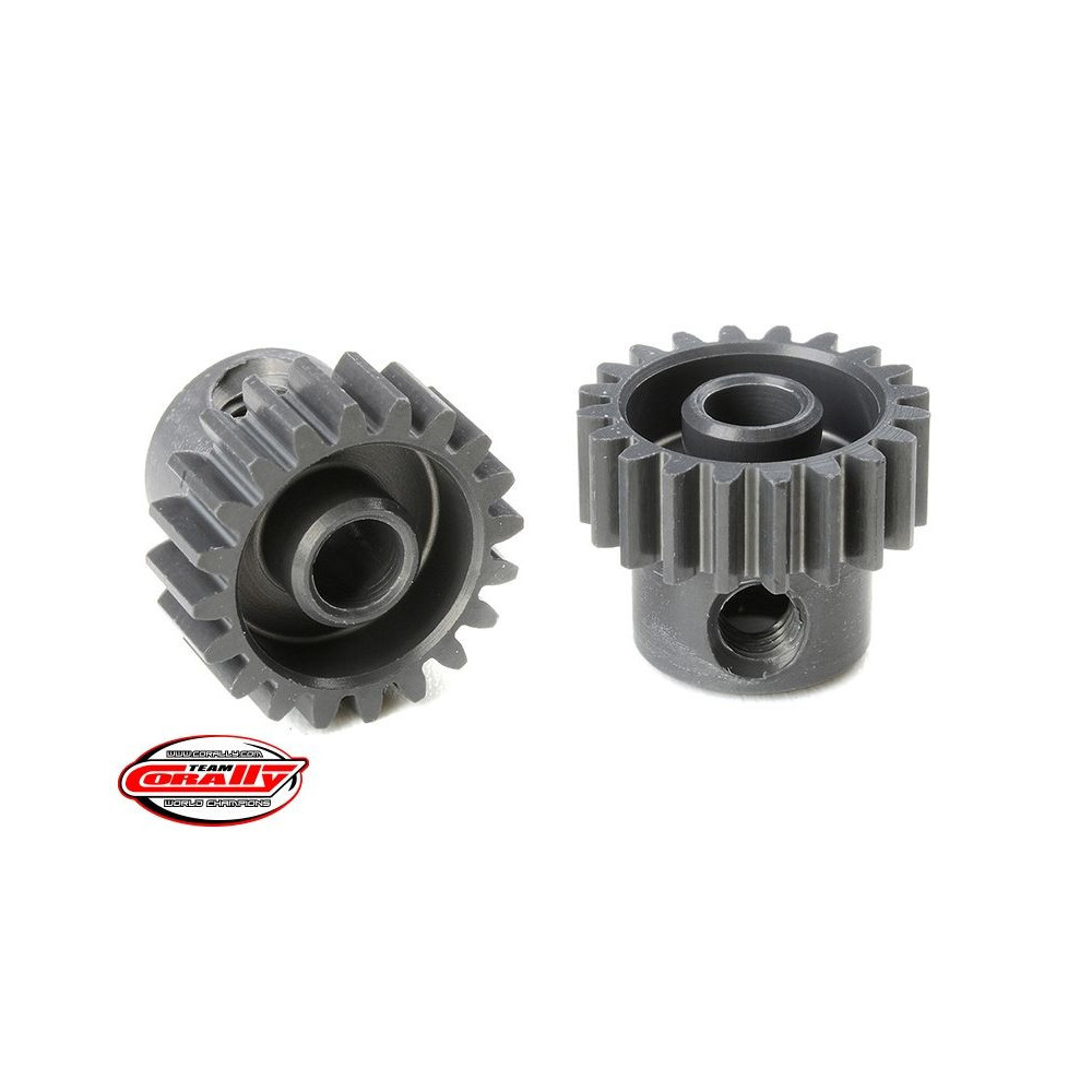 Rövid változat, anyaga edzett alumínium 7075 T6, 20 fog, fogmodul 48DP. 3,17 mm (1/8 in) átmérőjű motortengelyhez. A TEAM CORALLY fogaskerekek marással készülnek, majd edzettek a nagy pontosságú fogaskerekek biztosítása érdekében. Minden TEAM CORALLY fogaskerék az EU-ban készül.Více informací