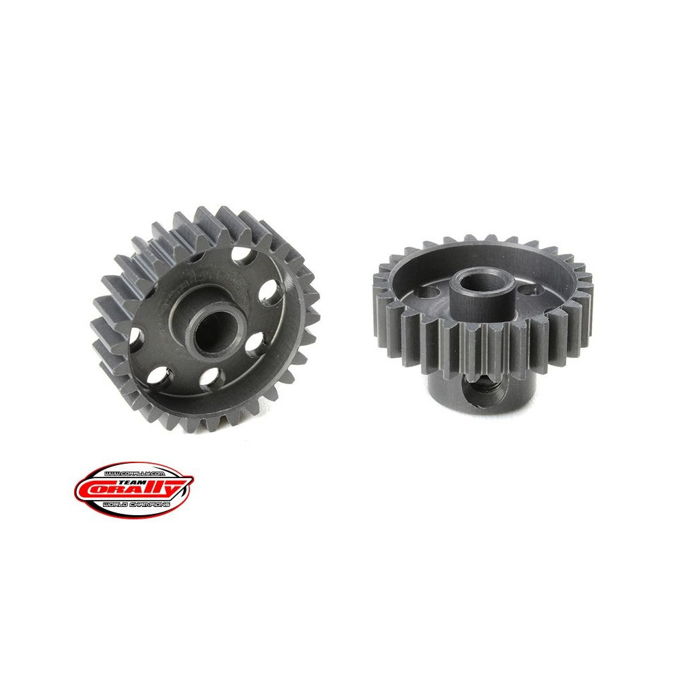 Rövid változat, anyaga edzett alumínium 7075 T6, 28 fog, fogmodul 48DP. 3,17 mm (1/8 in) átmérőjű motortengelyhez. A TEAM CORALLY fogaskerekek marással készülnek, majd edzettek a nagy pontosságú fogaskerekek biztosítása érdekében. Minden TEAM CORALLY fogaskerék az EU-ban készül.Více informací